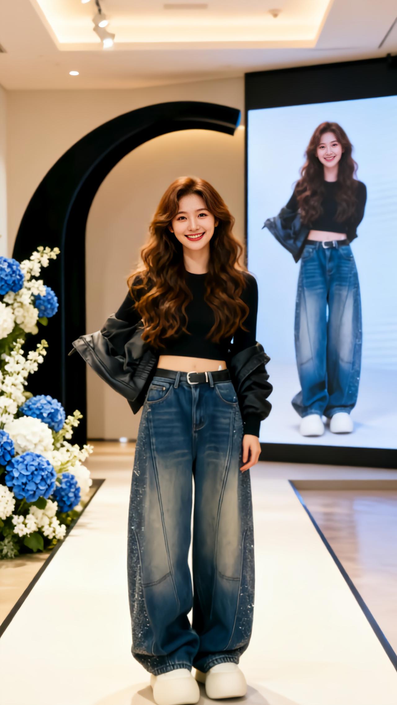 牛仔裤穿搭 舞台ootd 秀场 美到发光 直筒显瘦秀场同款长裤