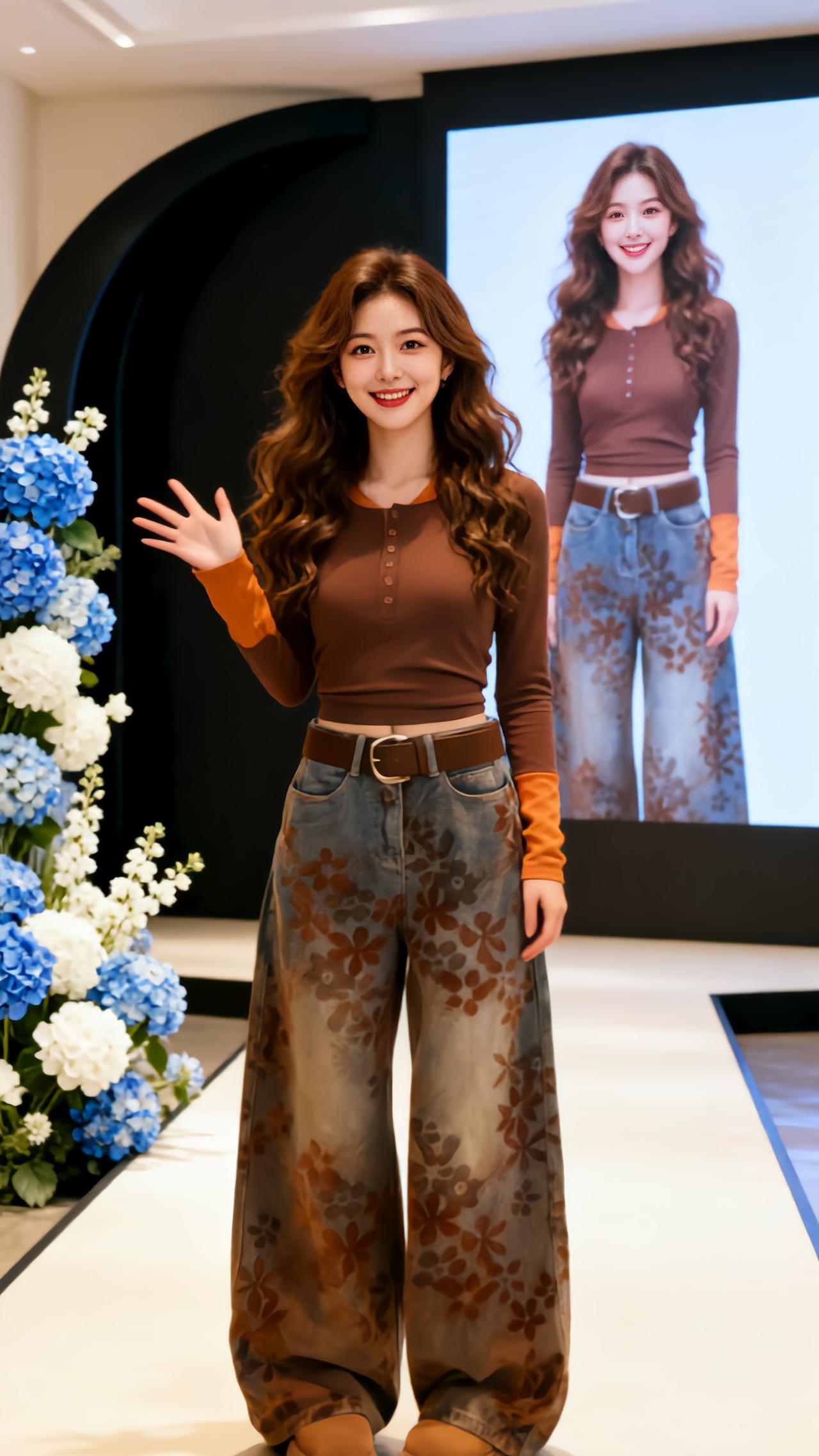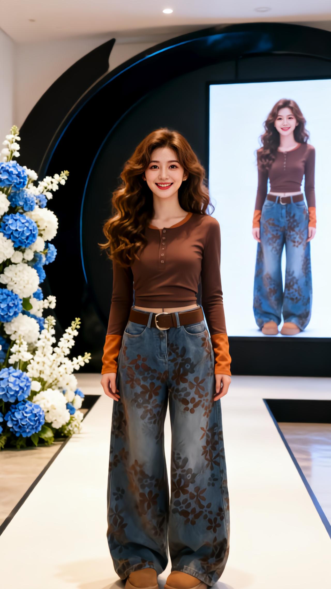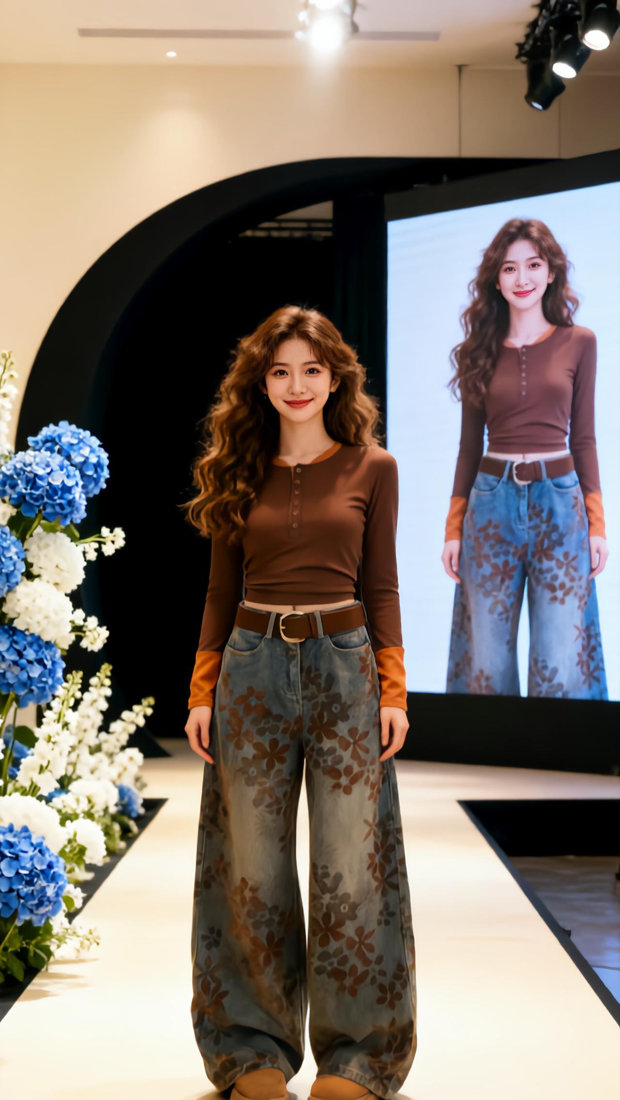 直筒显瘦秀场同款长裤气质高腰牛仔裤超模人鱼裤牛仔裤走秀微喇裤时尚魅力