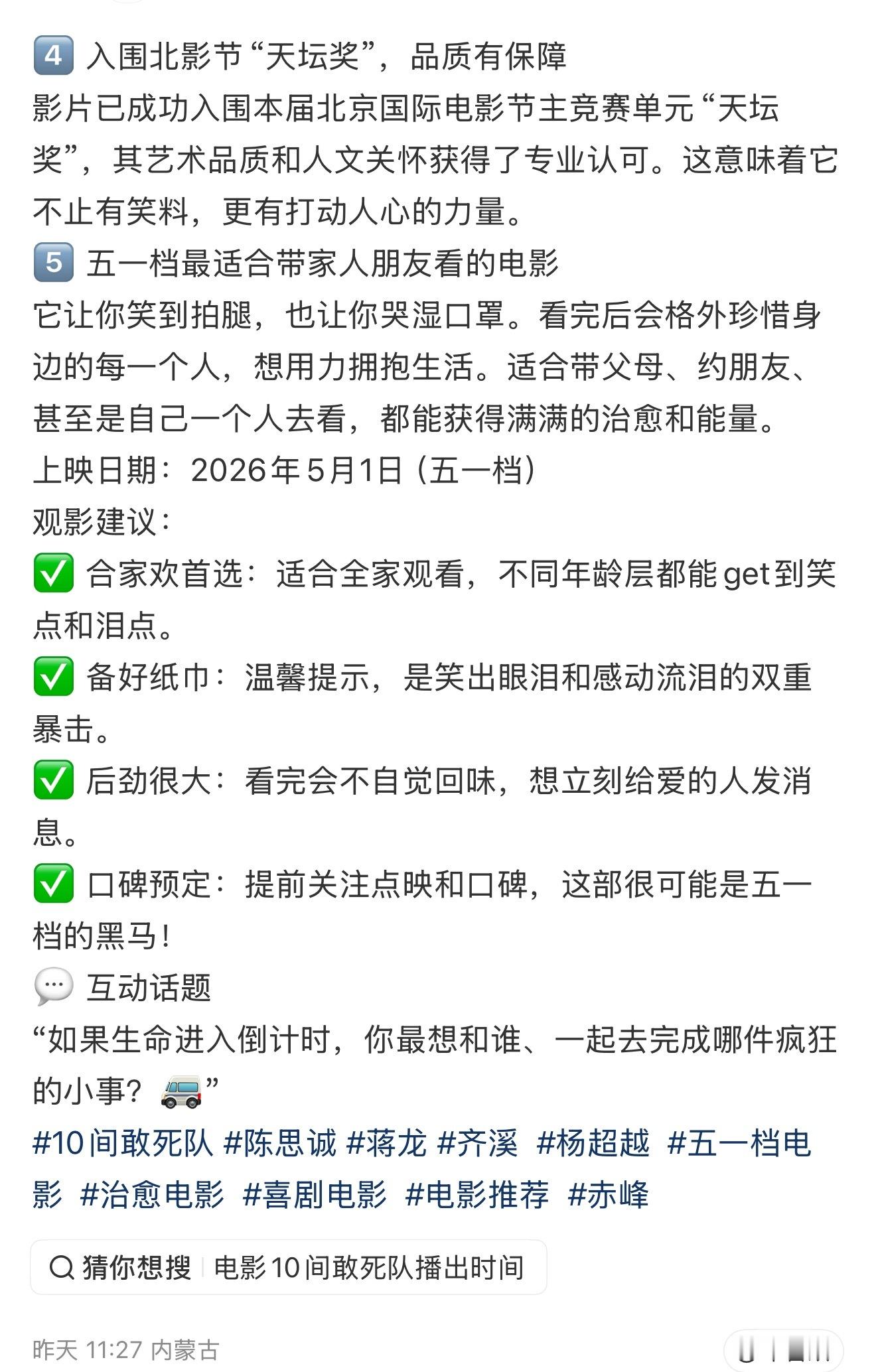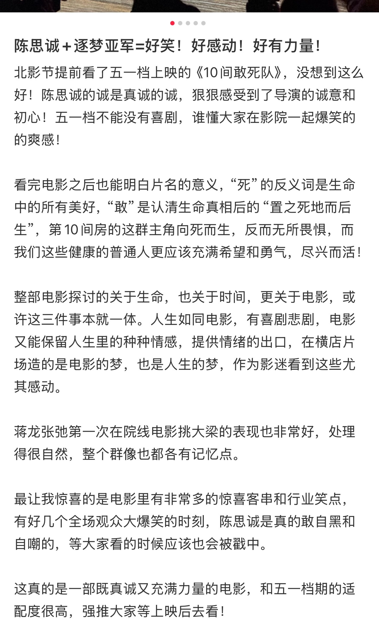 陈思诚新片真实口碑陈思诚新片口碑看完《10间敢死队》,真心觉得陈思诚太稳了,永远可以相信他的选片与叙事!