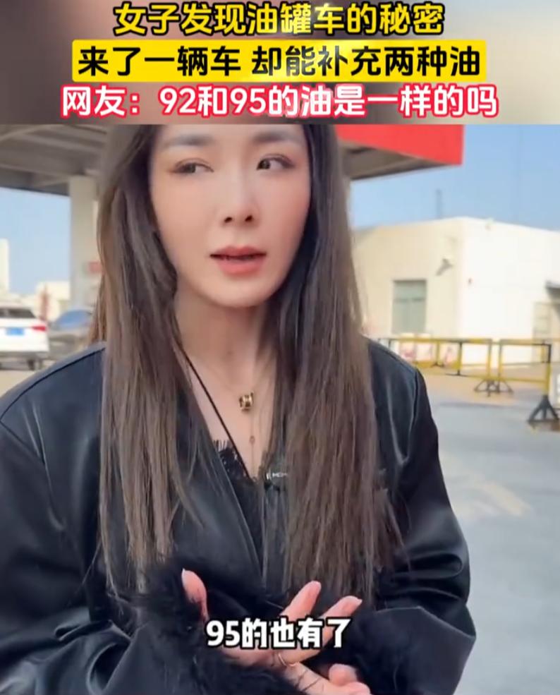 差点解释不清了!女子开车去加油站加油,被告知92和95的油都没有了,巧合的是,这时油罐车来了,两种油同时都有了,于是女子发视频吐槽:92和95的油是一样的吗?