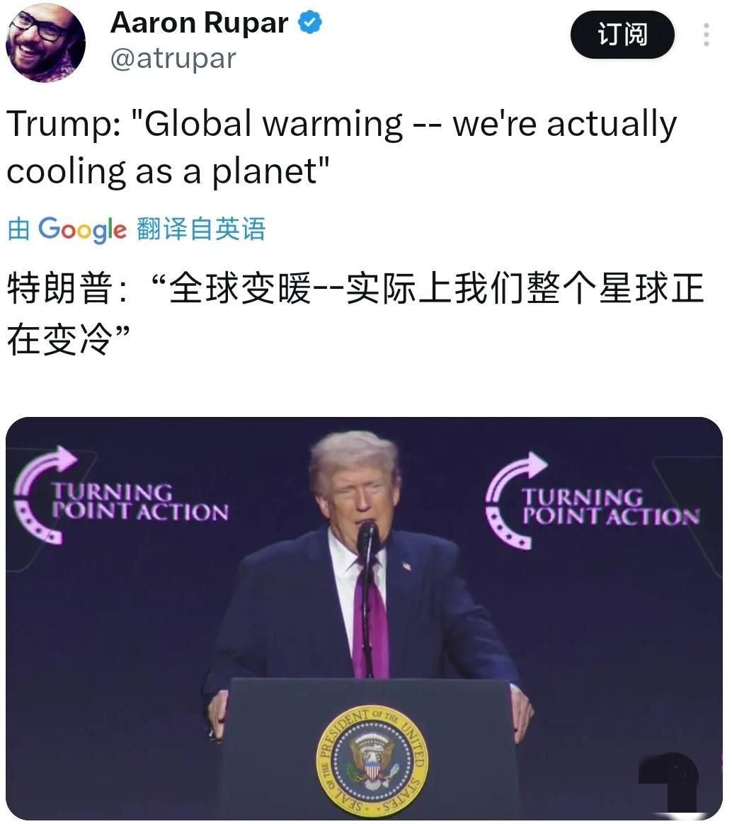 特朗普“全球变暖是骗局,星球正变冷”的观点与主流科学共识完全相悖。