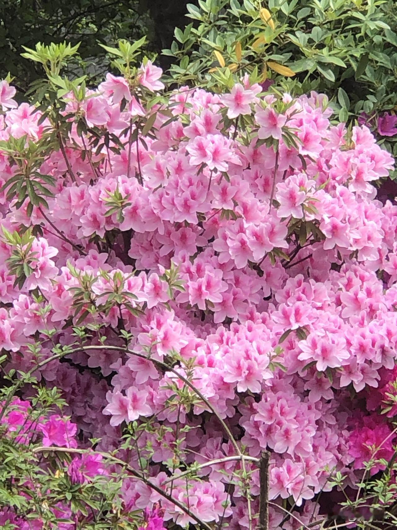 公园里的春天也太懂浪漫了!一丛丛白花花的绣线菊,还有开得漫山遍野的杜鹃花,粉的、