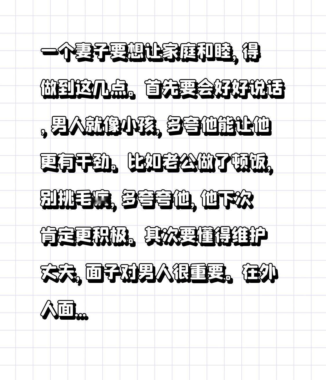 一个妻子要想让家庭和睦,得做到这几点。