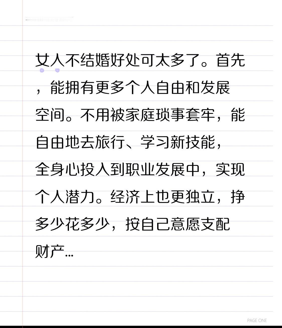 经济上也更独立,挣多少花多少,按自己意愿支配财产,妥妥的单身贵族。而且不用处理婆媳关系,永远保持年轻心态。