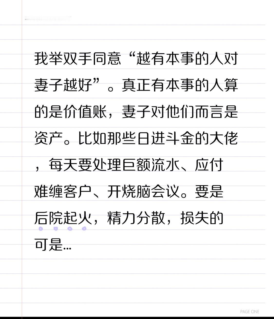 我举双手同意“越有本事的人对妻子越好”。真正有本事的人算的是价值账,妻子对他们而言是资产。比如那些日进斗金的大佬,每天要处理巨额流水、应付难缠客户、开烧脑会议。要是后院起火,精力分散,损失的可是真金白银和机会。所以他们给老婆买包、安排度假,这是“情绪稳定基金”,投入小却能换来大后方安稳。