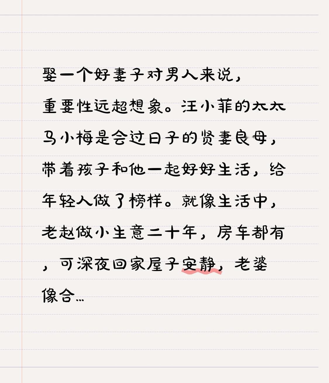 娶一个好妻子对男人来说,重要性远超想象。汪小菲的太太马小梅是会过日子的贤妻良母,带着孩子和他一起好好生活,给年轻人做了榜样。