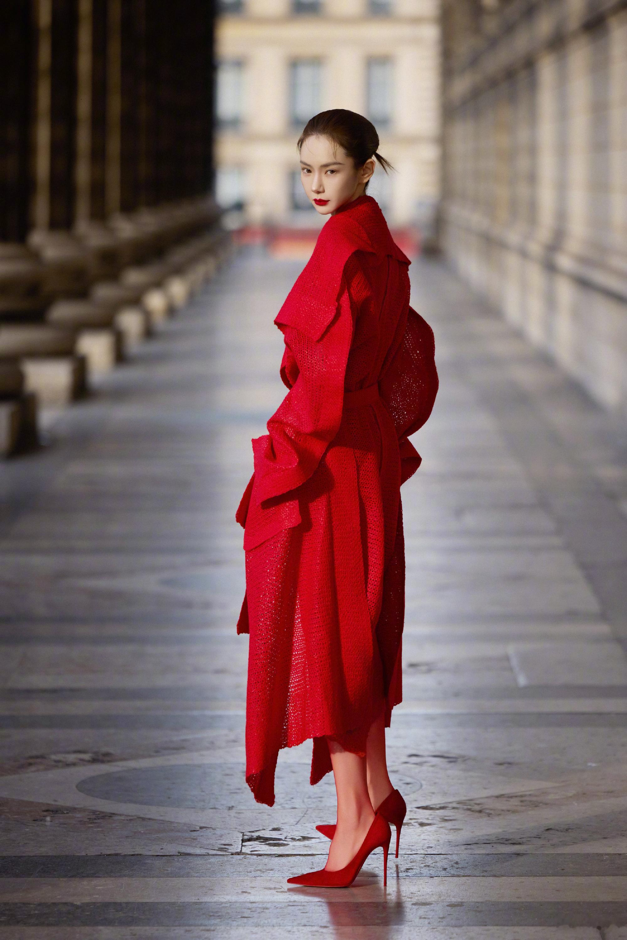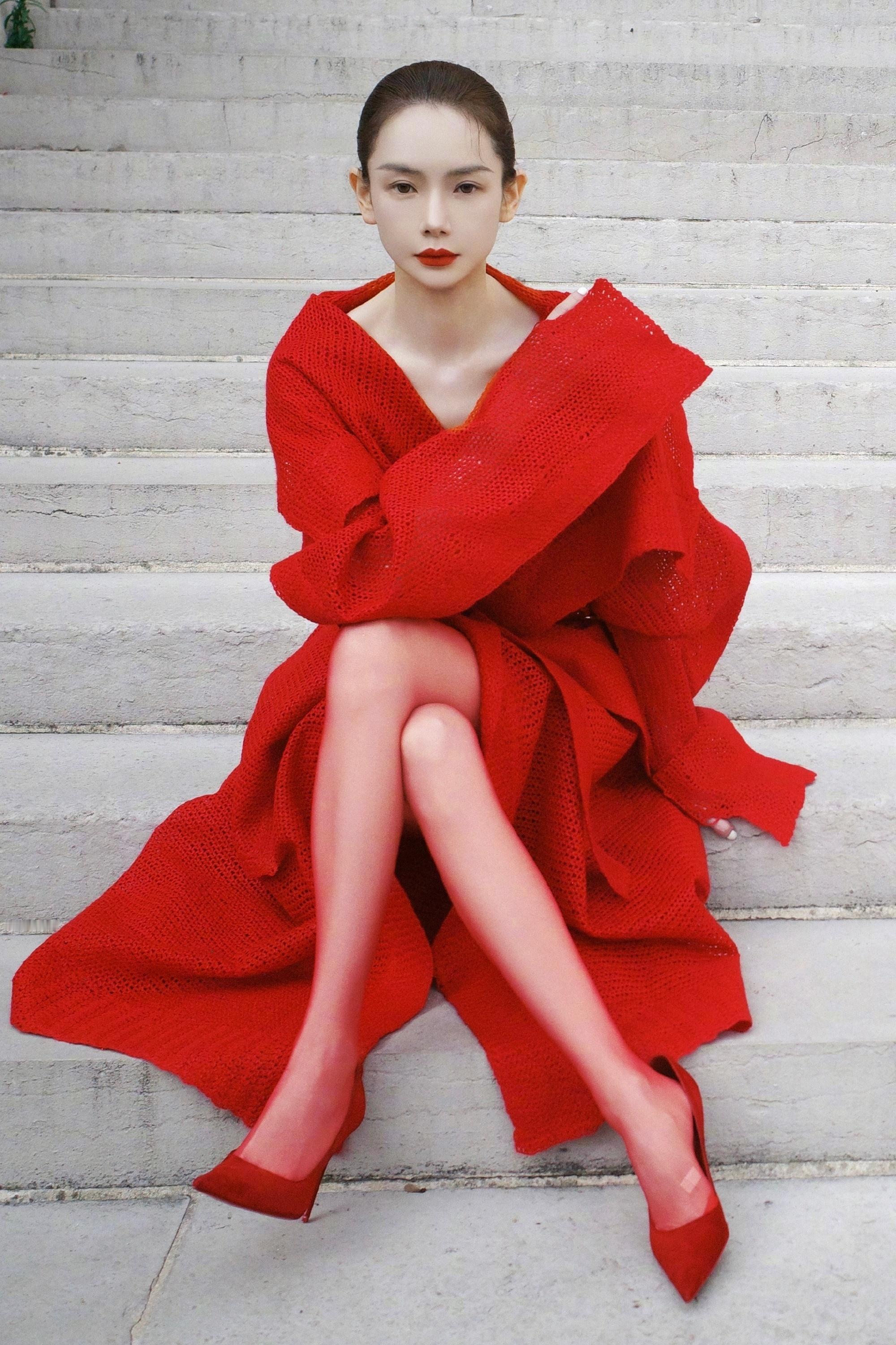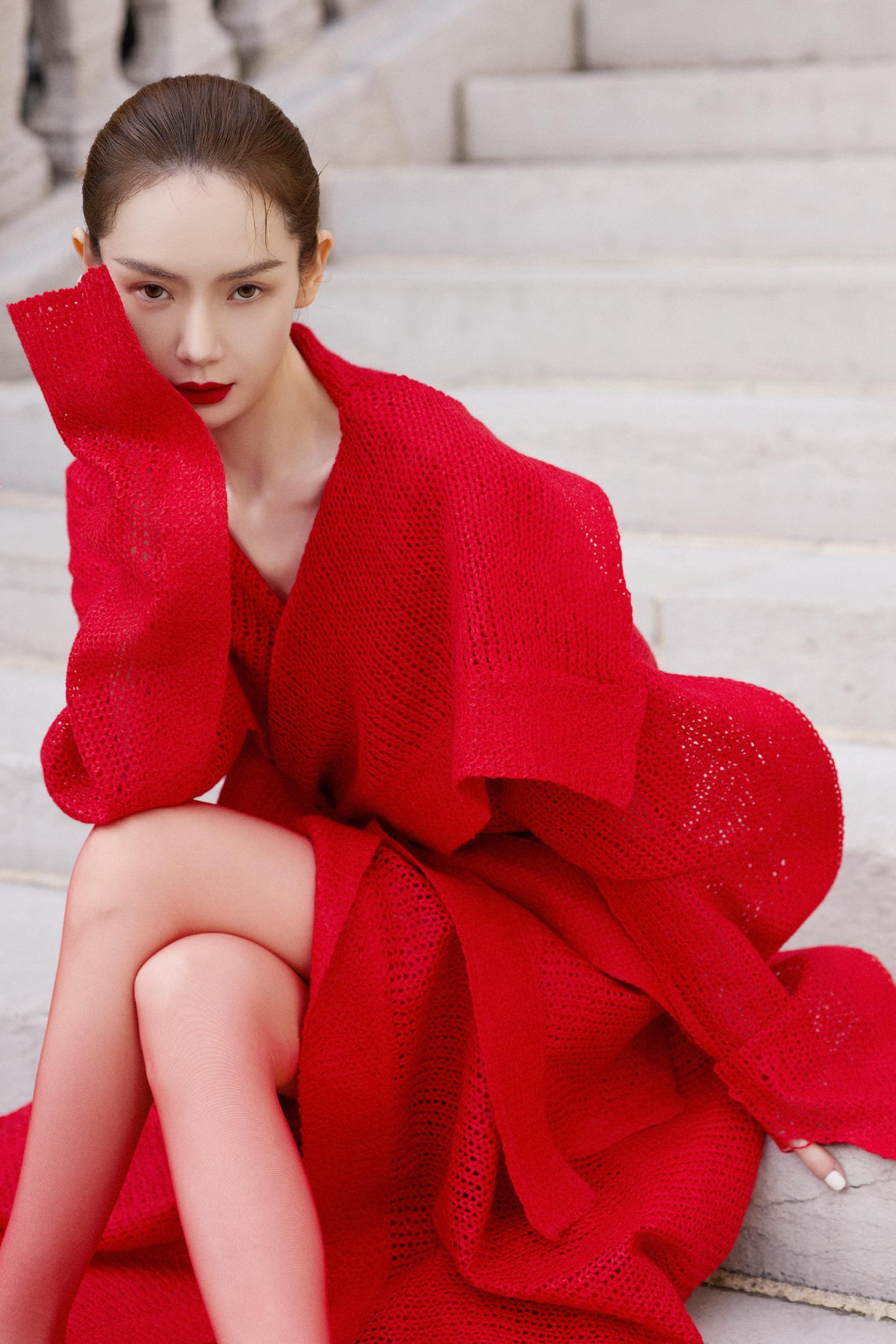 戚薇冷酷穿搭大片,热烈红裙大长腿。戚薇