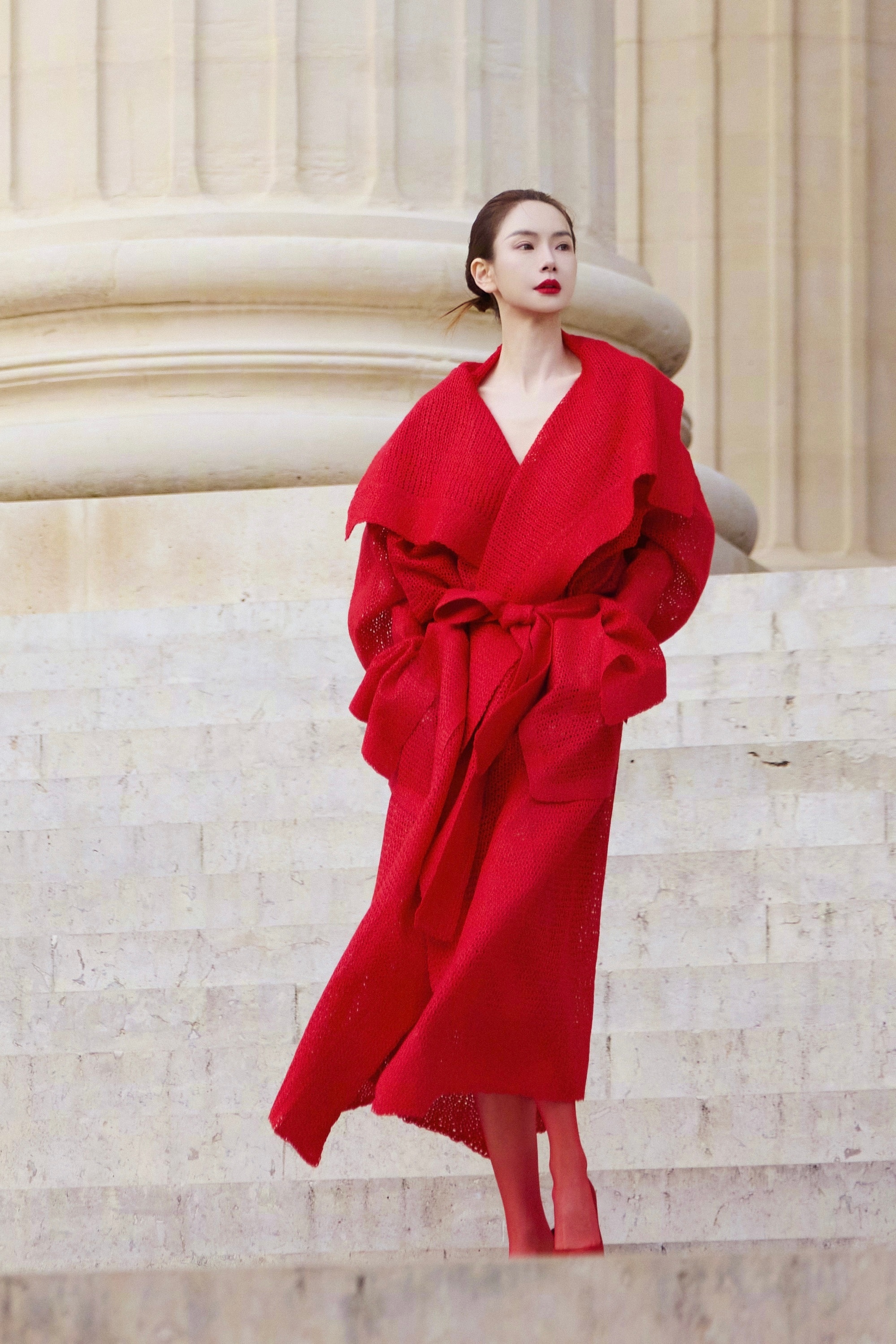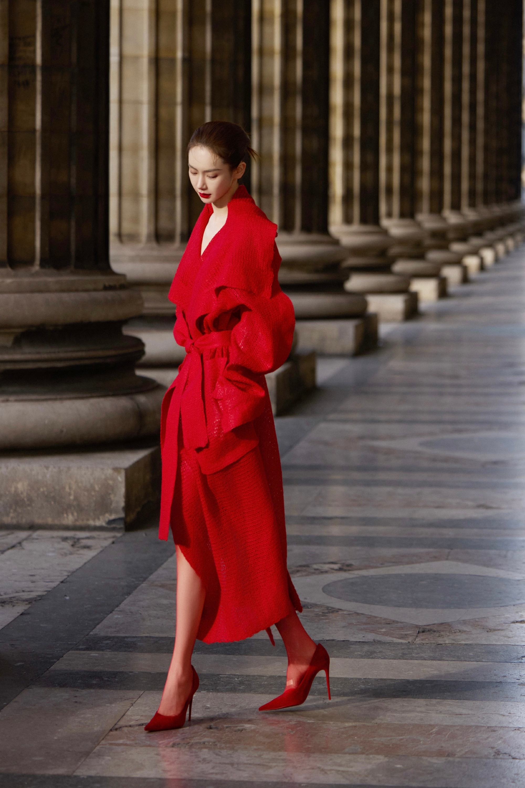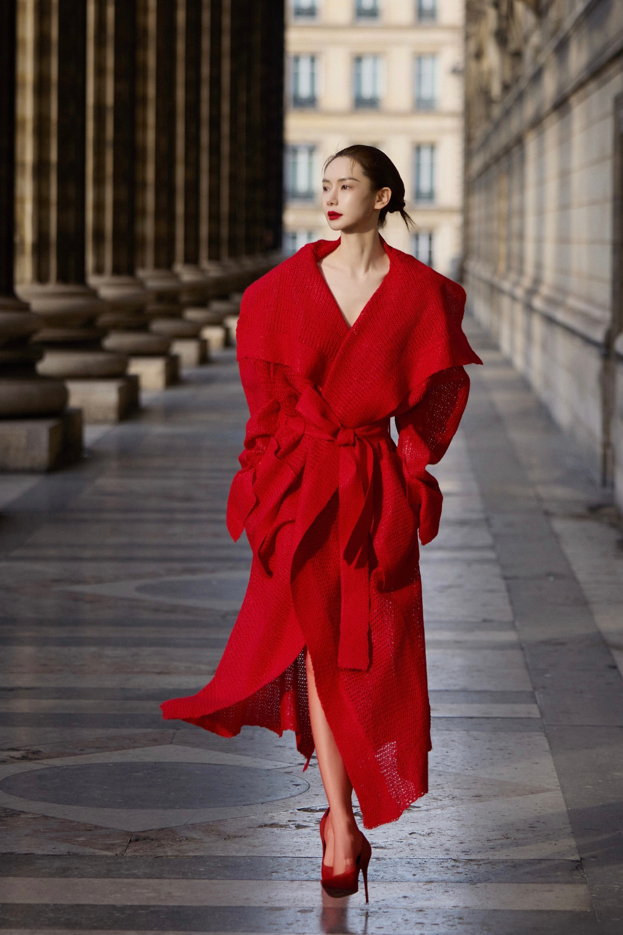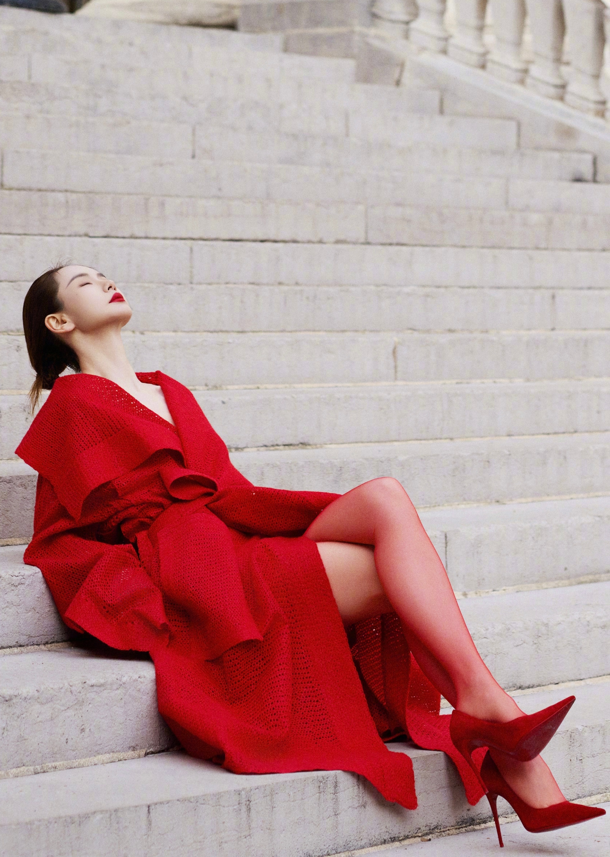 戚薇冷酷穿搭大片,热烈红裙大长腿。戚薇