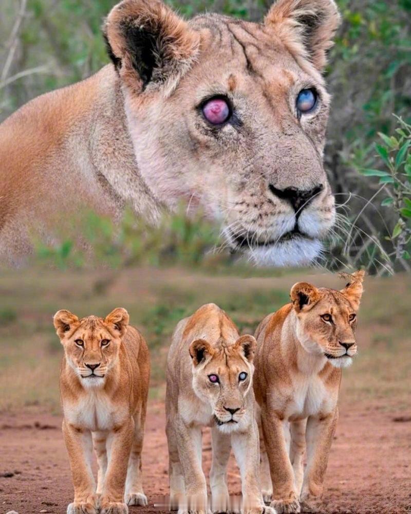 南非阿多大象国家公园的17岁母狮乔西因年龄原因失去了视力。她在两个女儿的坚定支持下生存了5年——她们狩猎,分享食物,并通过触碰引导她。