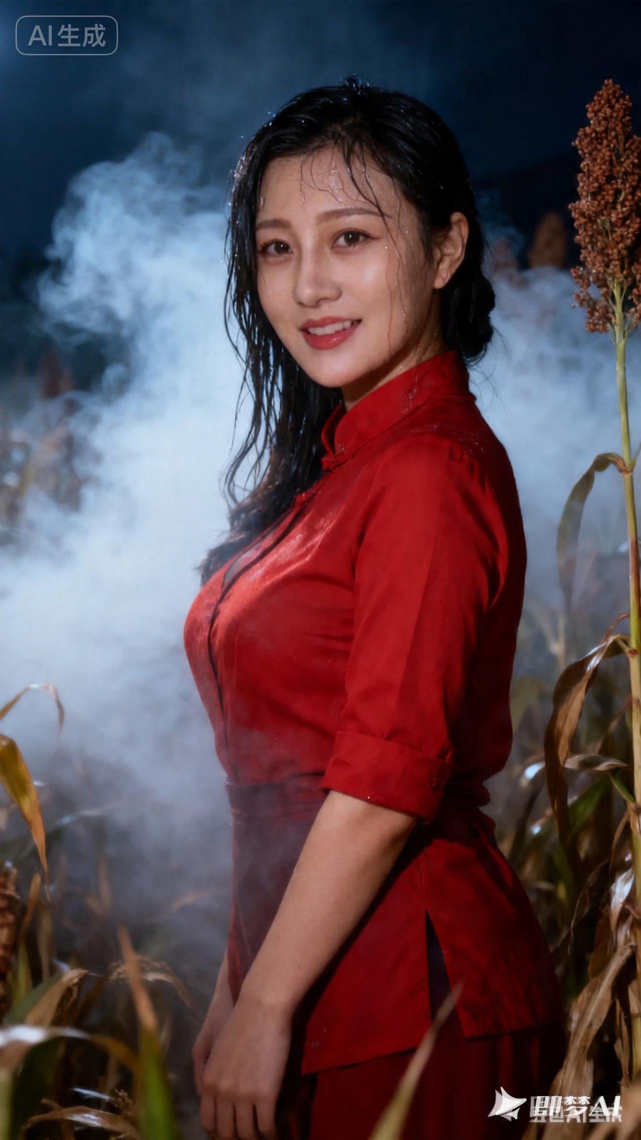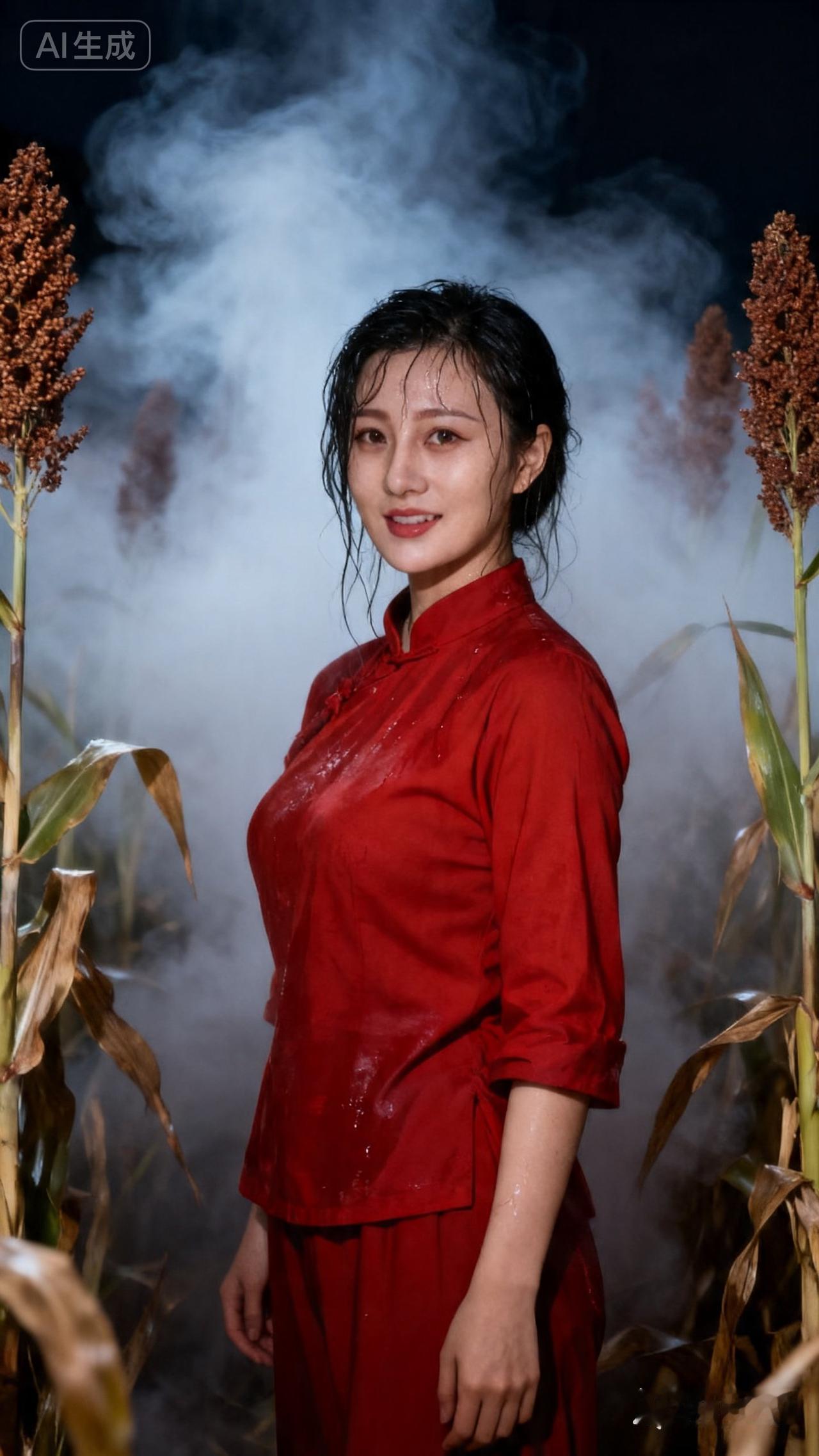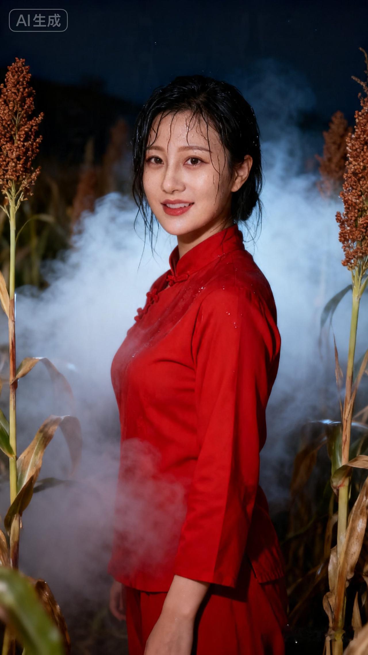 雨中红衣少女,唯美如画,尽显东方韵味。