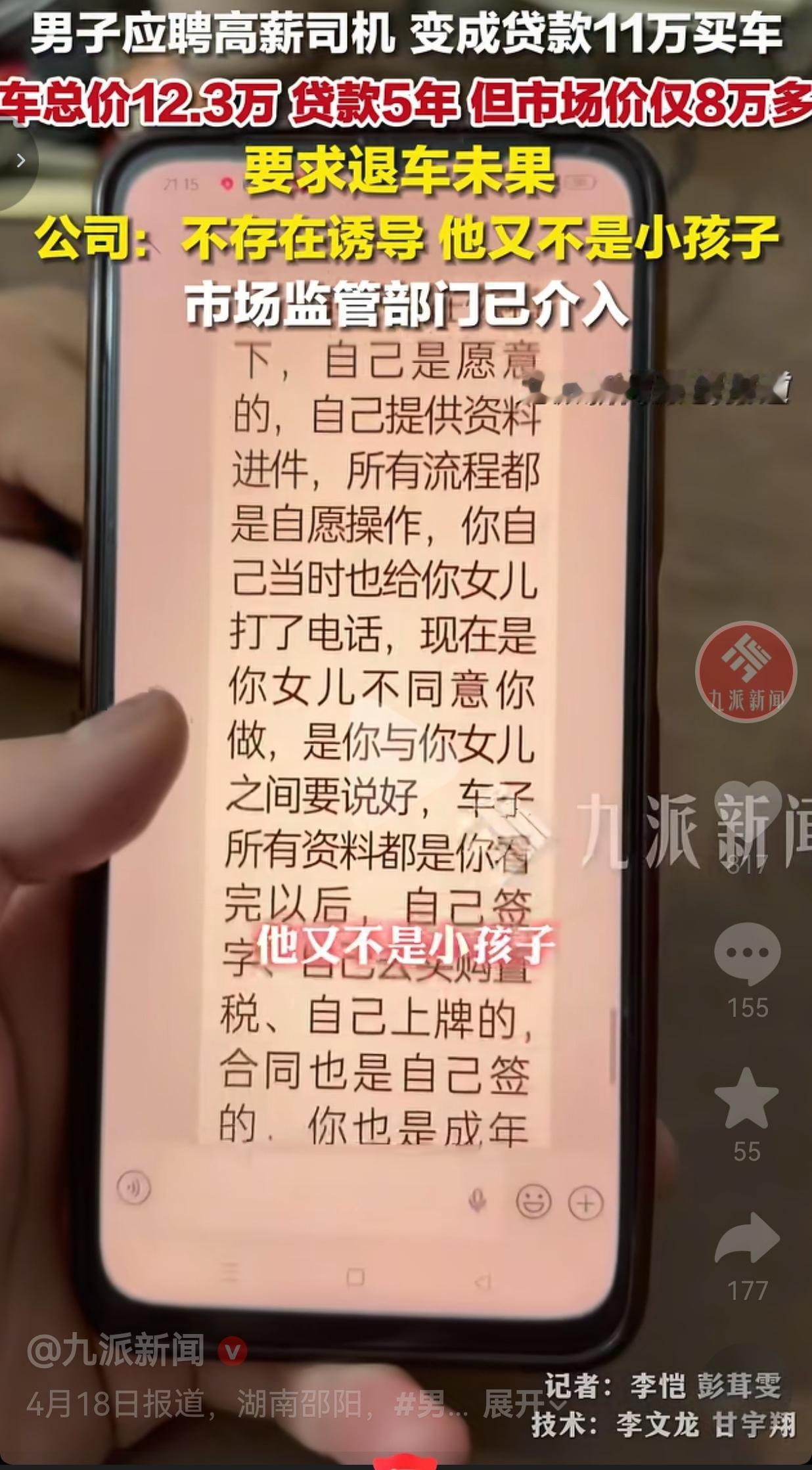 可兰先生后来一打听,同款车在市面上也就卖8万多,自己不仅被高价卖了车,还背上了高额利息的贷款,可当初承诺的司机岗位,却再也没人提了。