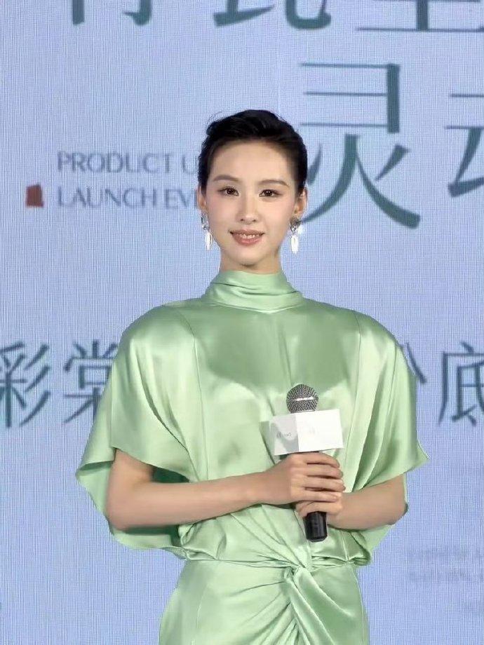 最近陈都灵在出席时尚活动的时候搭配了一身水绿色的裙子,看上去年轻又迷人。