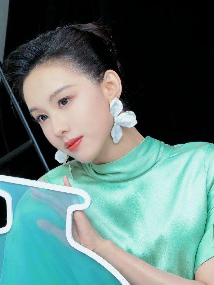 她耳朵上搭配了漂亮的花型耳坠,让她看起来像个靓丽的仙女,确实是太美了。