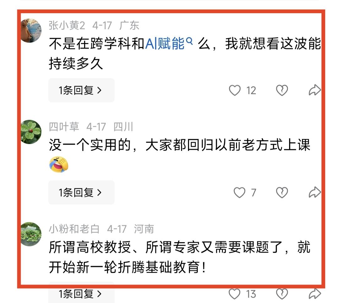 其实这一点都不奇怪,每一种火爆的教学模式都是极个别人推动的,像一阵风一样刮过,有时会取得一定成效,但更多的时候是一地鸡毛。从洋思到杜郎口,从小组合作学习到翻转课堂,从大单元到跨学科,现在又非常流行AI赋能,每一种教学模式都能火一段时间,但并不长久。