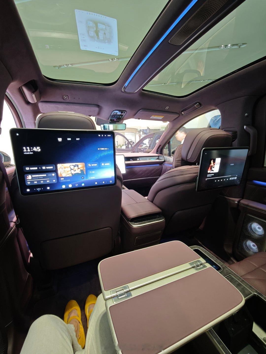 逛商场路过忍不住瞅一眼es9~不得不感慨,现在国产品牌五六十万的车就已经能给人一种当年几百万迈巴赫宾利等豪车的感觉这才短短几年时间啊~~~而且这细节呈现的高级感,连第三排都有超舒服头枕,给足体面~(代入一下如果自己是个老板秘书,也不用蹲在后备箱)隐私玻璃响应很灵敏~来来的细节真的很能打~上手就能感受到~连三排头顶上的隐藏挂衣钩弹出都很有质感,几乎现在能上的高科技都上了~什么时候有车企可以发力研究一下车载灭蚊装置es9大V聊车 广州·蔚来中心丨广州美林天地