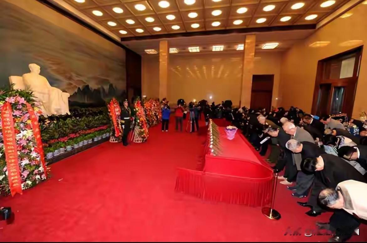 会议结束后,中共中央领导人以及参会人员依次步入了纪念堂中的瞻仰厅,向毛主席的遗体鞠躬。