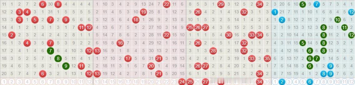 最惊人的是前区全大数,最小号码仅24,最大34,小大比直接0:5,三区比更是0:1:4,小号彻底“隐身”。同时开出24、25连号,还带出34重号,奇偶比3:2,组合走势完全偏离常规。