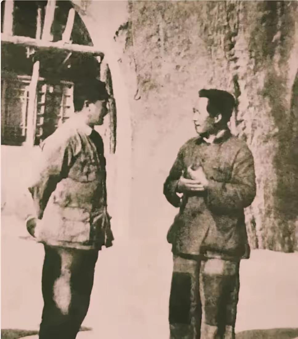 延安老照片:伟人窑前交谈,虽模糊却震撼人心