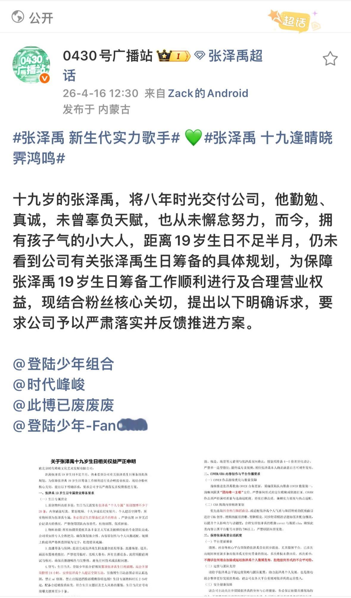 张泽禹生日无预热张泽禹粉丝诉求,要求公司给张泽禹发十九岁生日预热