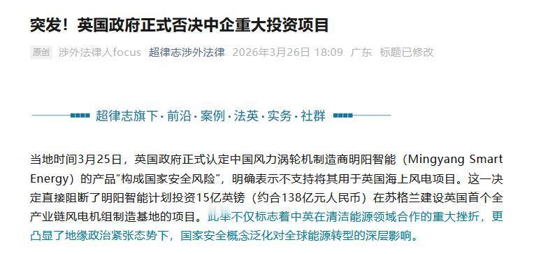 这种情绪是可以理解的,毕竟明阳在北海项目上的投入很大,连锁反应最终会对明阳的出海计划产生负面影响。但值得注意的是,明眼人在一月份斯塔默访华期间没有承诺明洋智能投资的时候就已经知道该项目推进的可能性不高了。甚至大部分人可能批评错了对象。斯塔默的工党政府恰恰是英国国内比较希望推进明洋智能落地的势力之一,世界地缘政治的根本性改变才是最具影响力的结构性阻碍要素。
