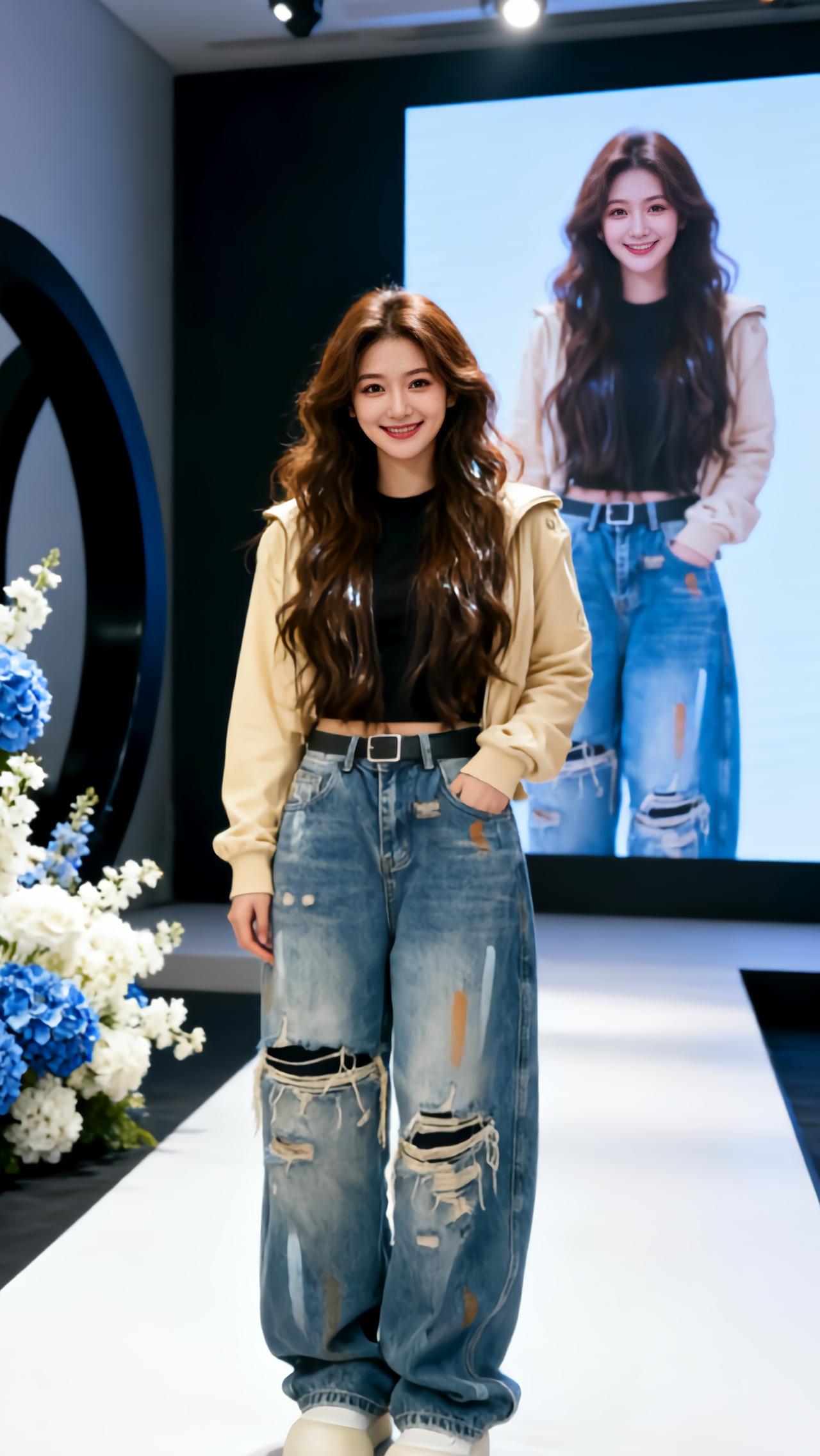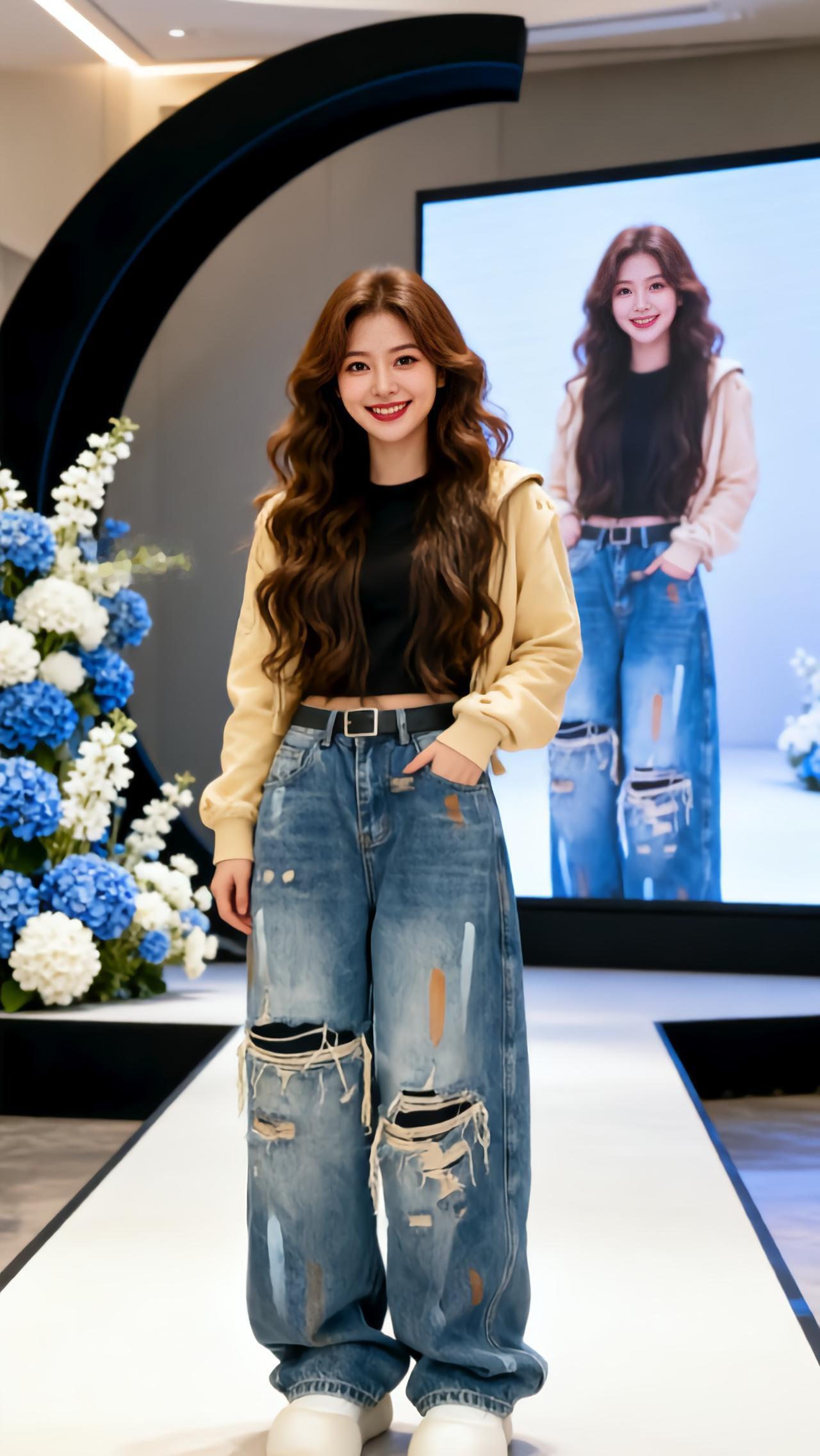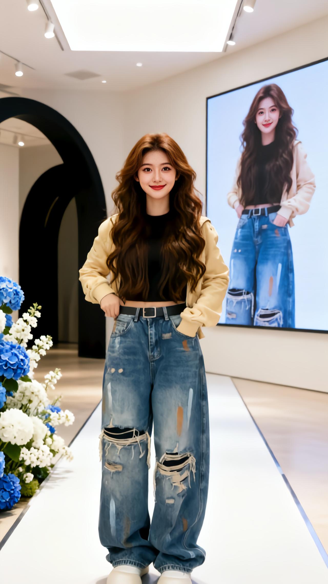 牛仔阔腿裤的百变魅力 显瘦破洞阔腿裤 直筒显瘦秀场同款长裤 破洞阔腿裤穿搭 炸裂