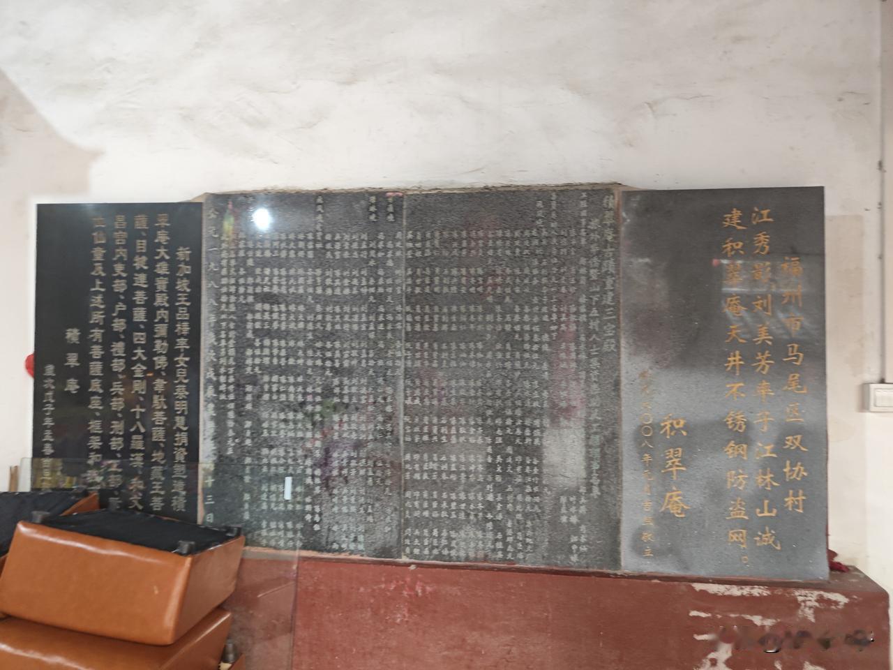此庵坐落于积翠岩下,始建于明代,因四周林木苍翠、叠翠如云而得名,庵中居士告知案上水果饮料皆可自取,无需客气。我取了可乐与香蕉,这份毫无防备、真诚质朴的善意,比清风更舒心,比山色更动人。离开时随心扫码布施,只愿把这份山间的温暖延续下去。