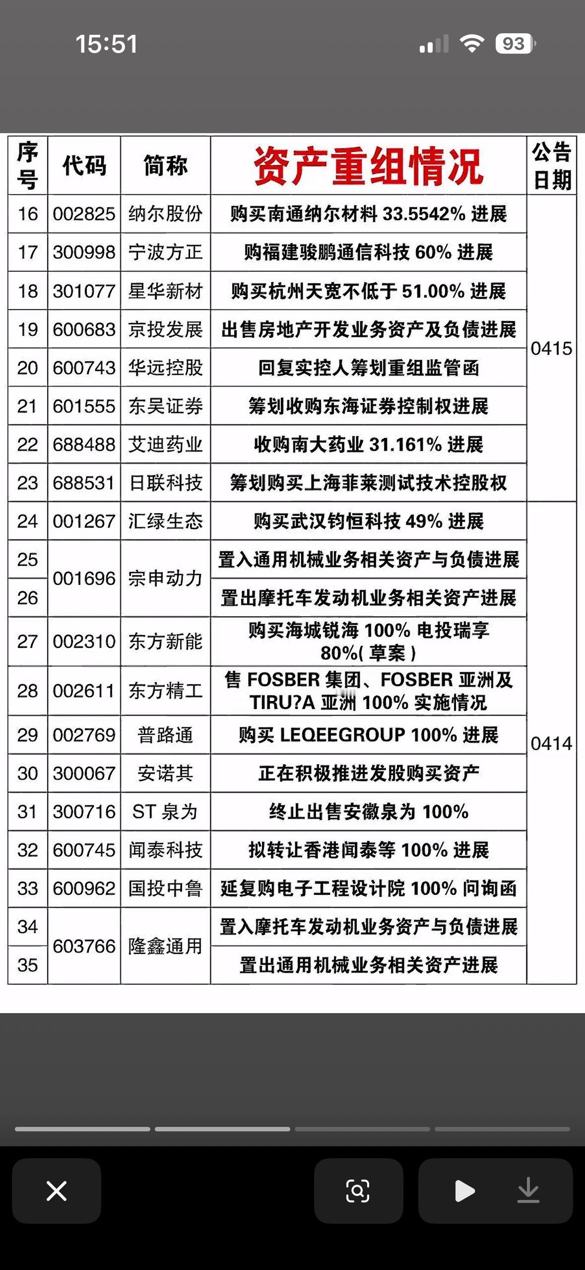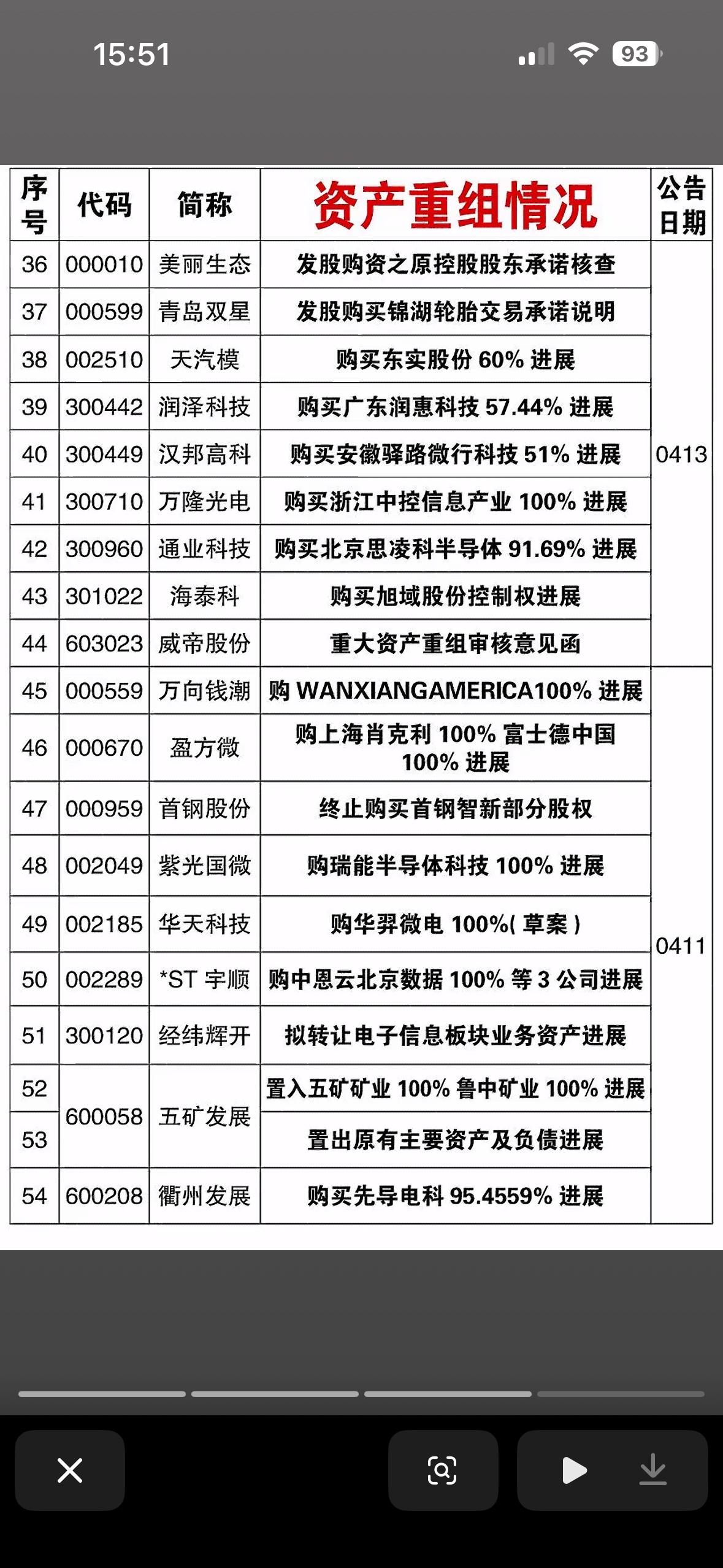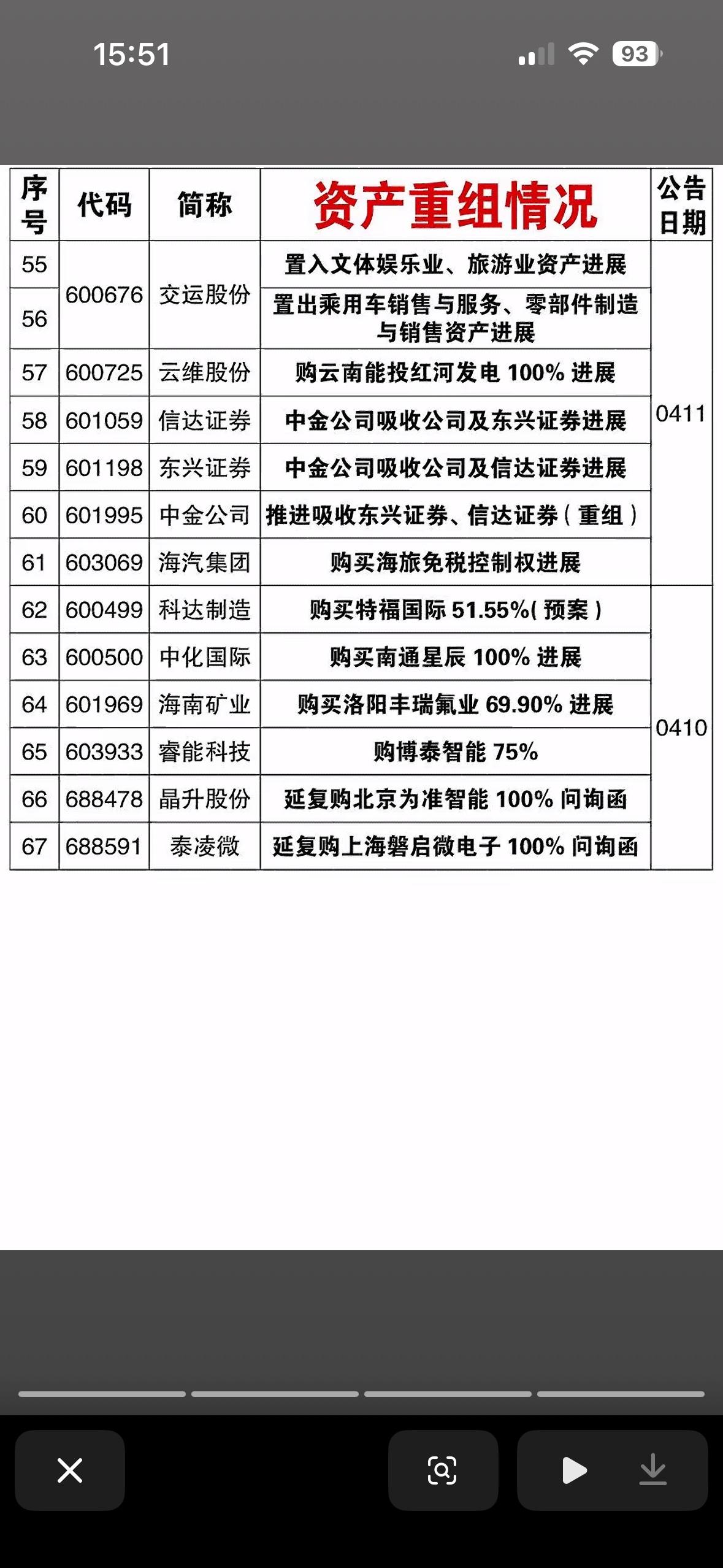 4月19日截止本周,67家公司披露资产重组计划