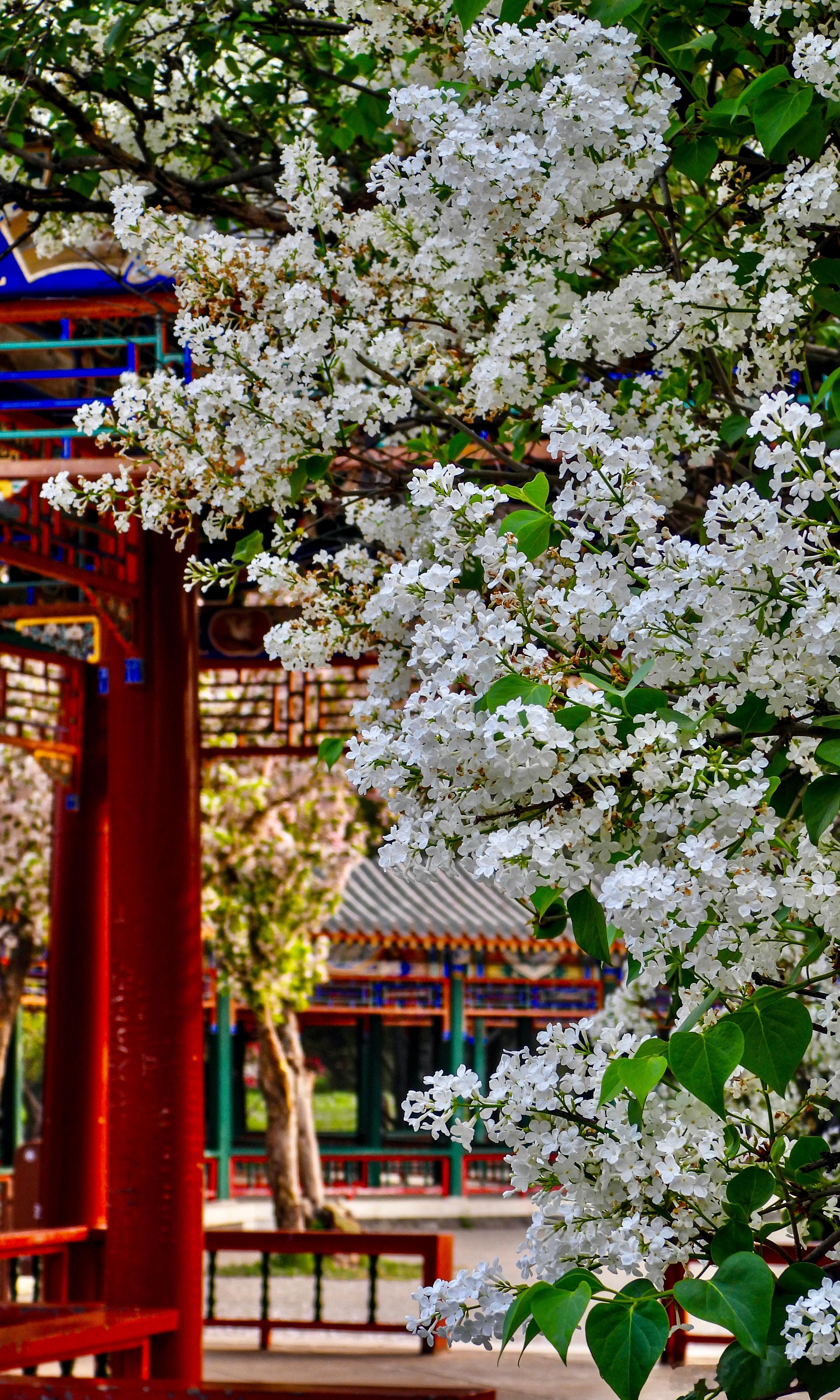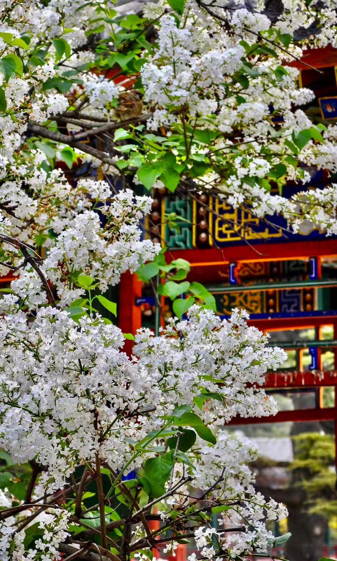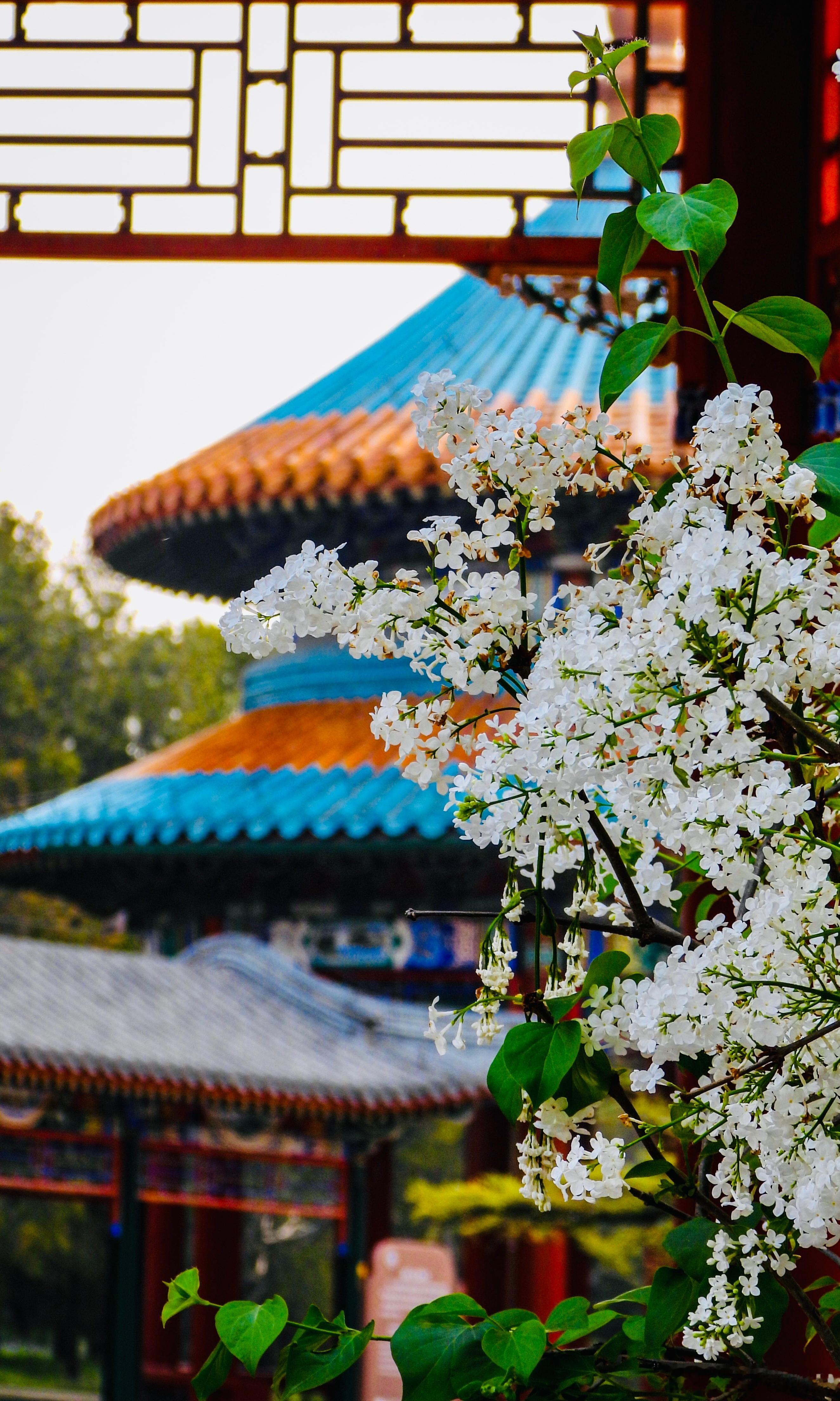 天坛公园 双环亭 丁香花开摄影