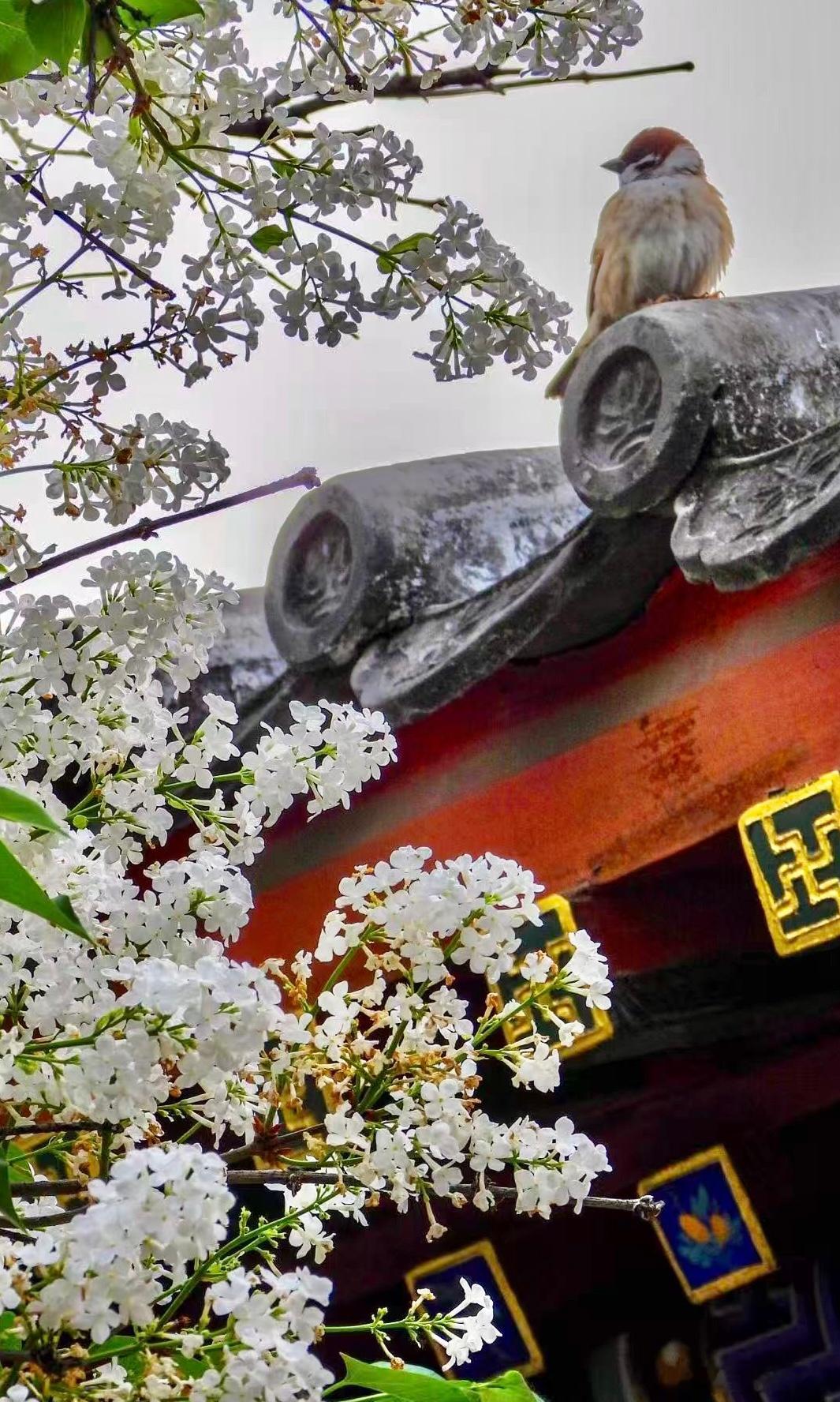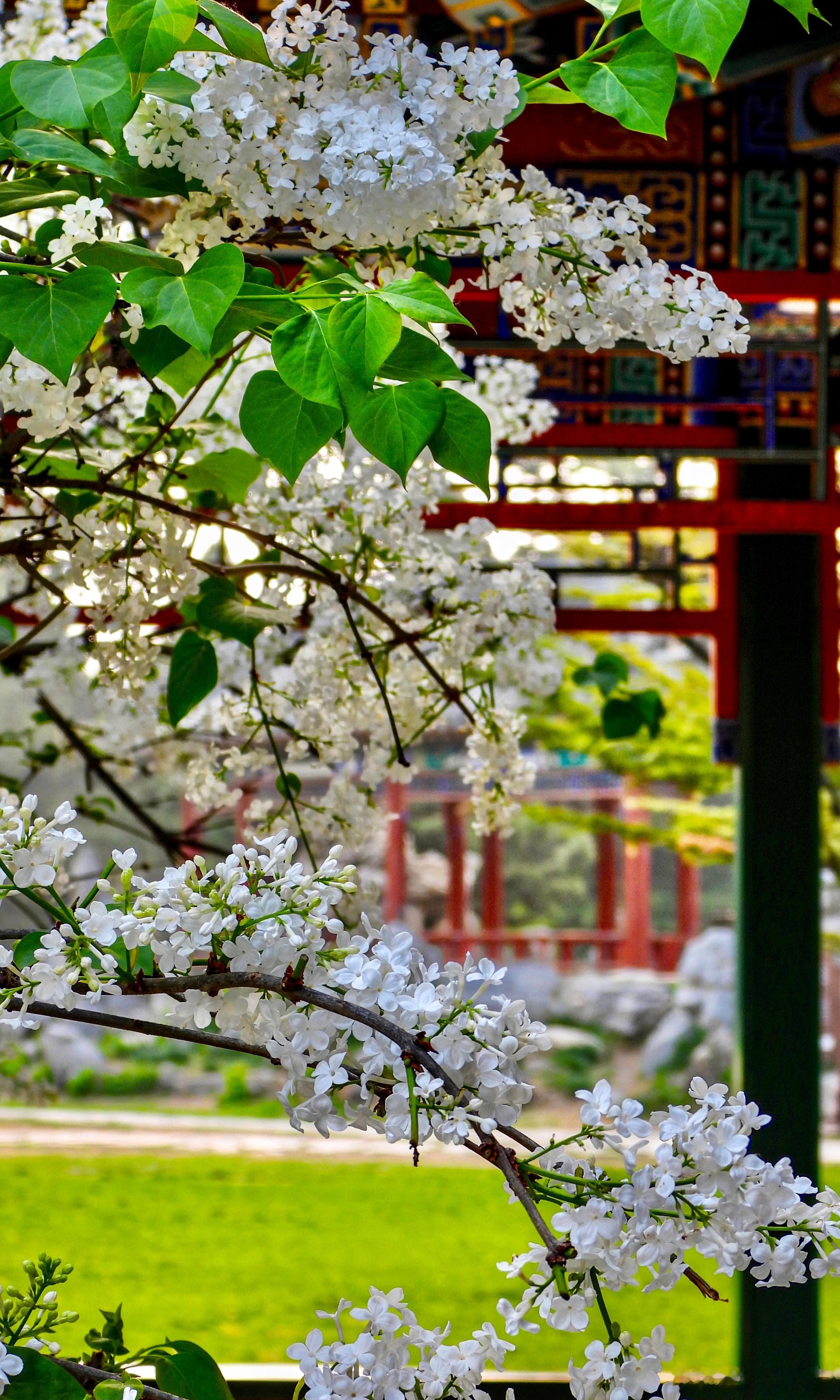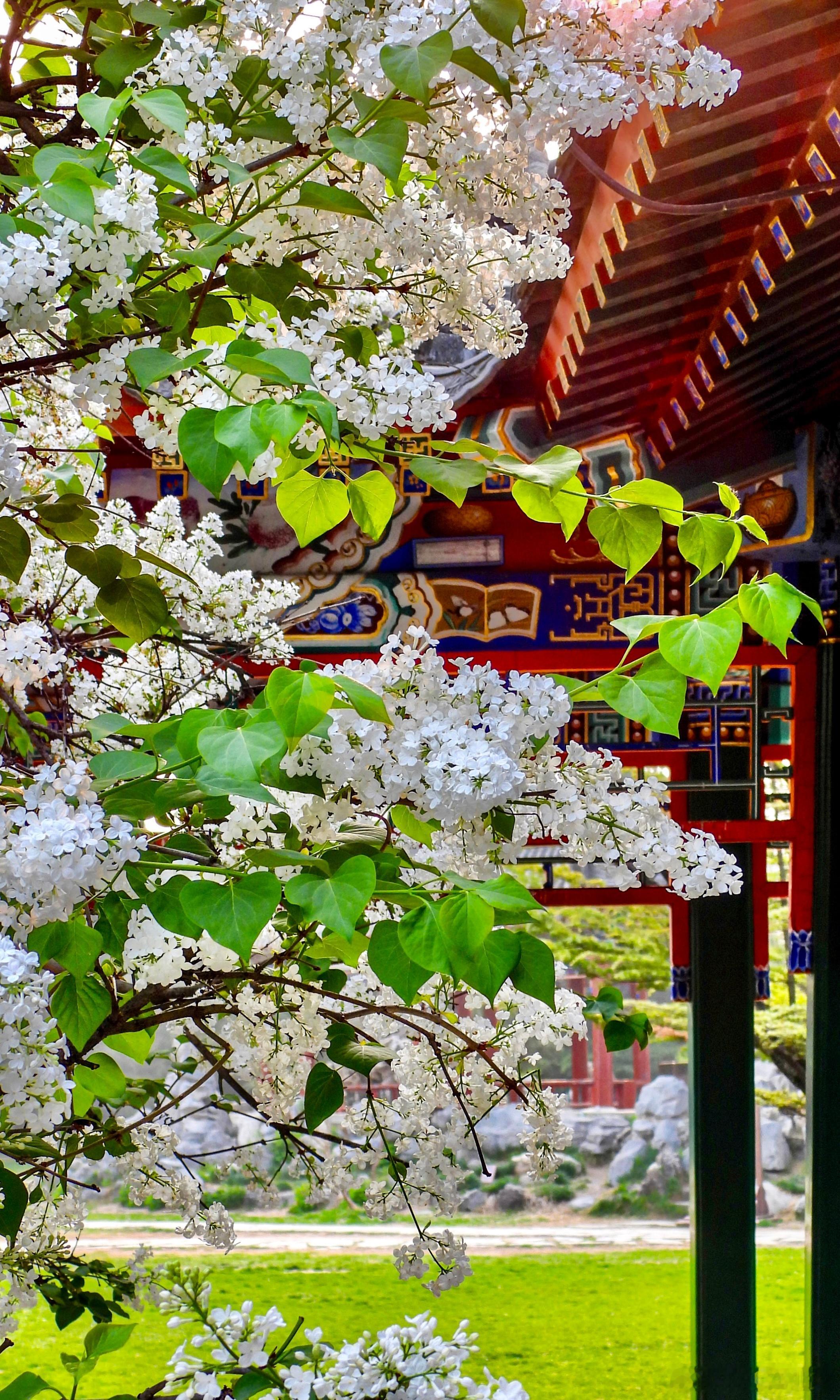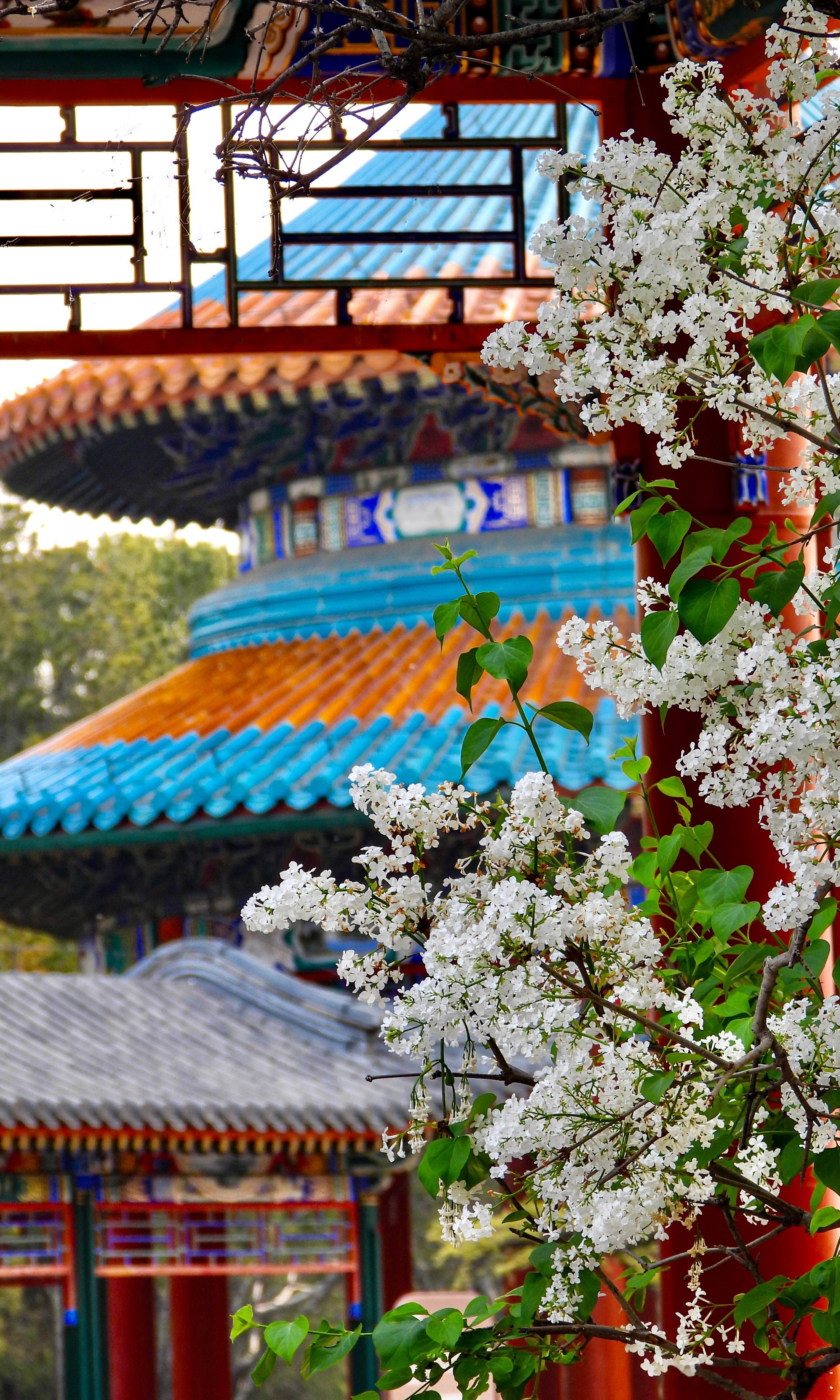 天坛公园 双环亭 丁香花开摄影