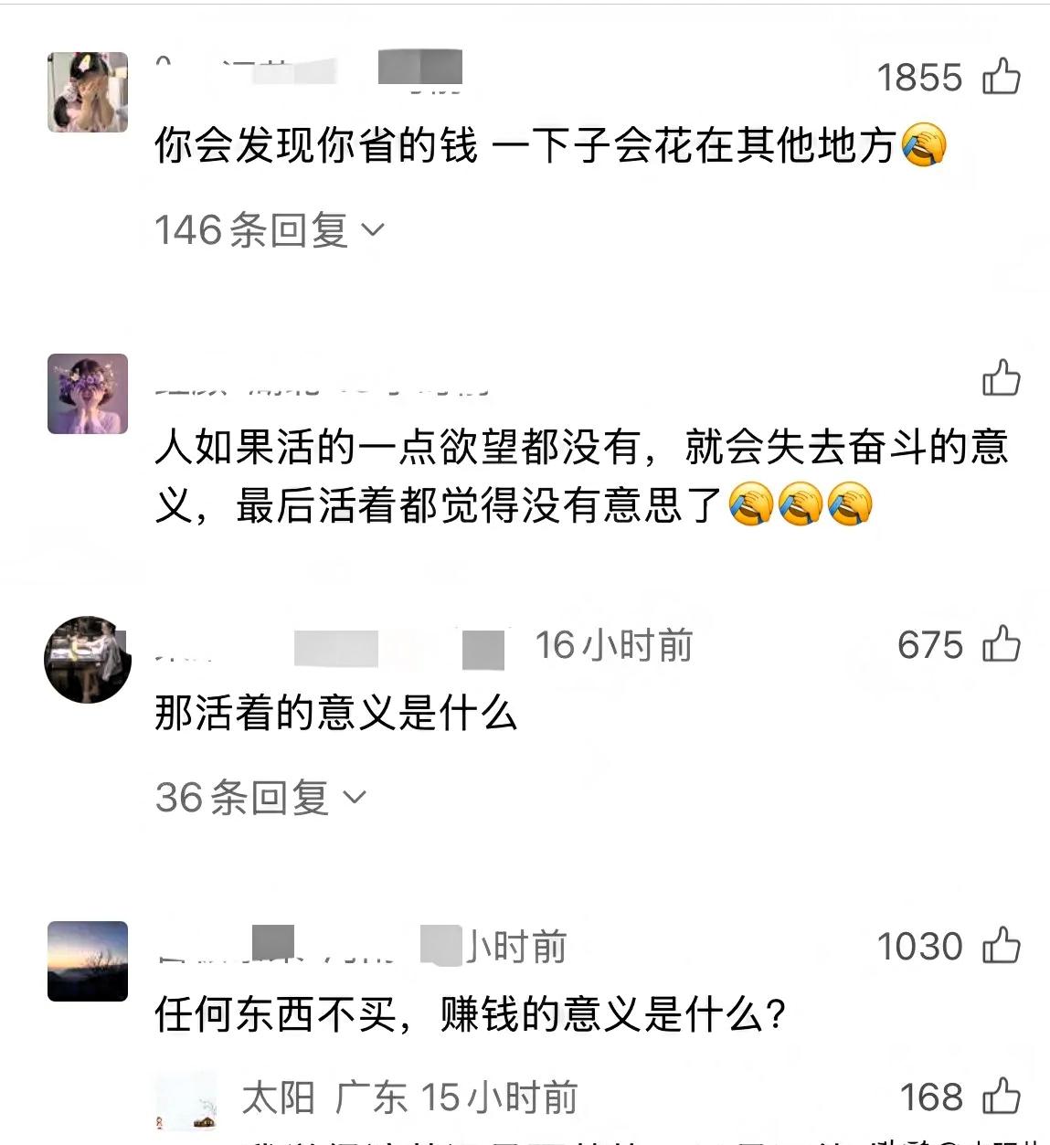 不少网友提出质疑,若是完全不消费,努力赚钱便失去了原本的意义。
