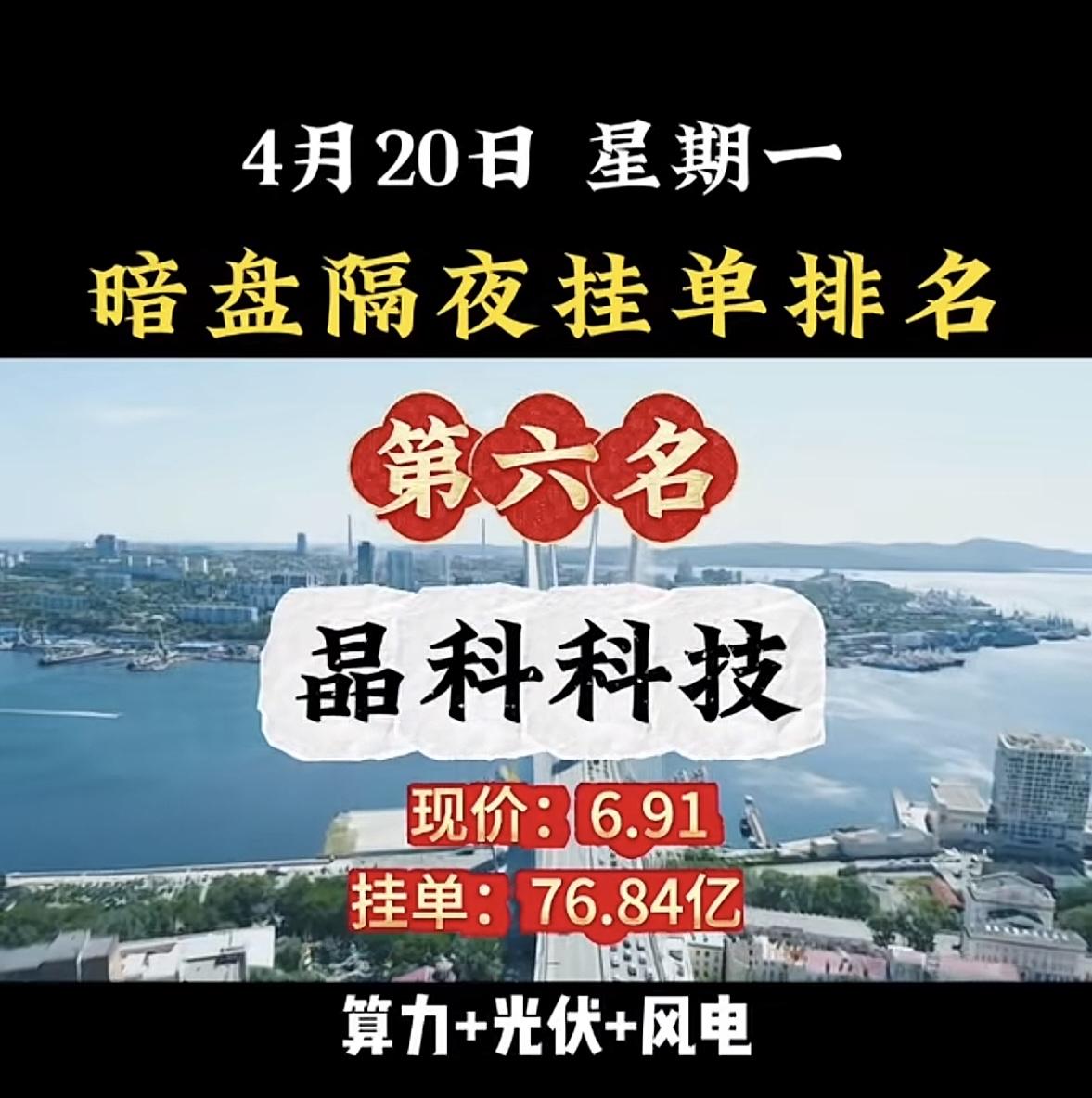 4月20日周一暗盘隔夜挂单排行榜揭晓 晶科科技这情况有点意思。暗盘隔夜挂单排名