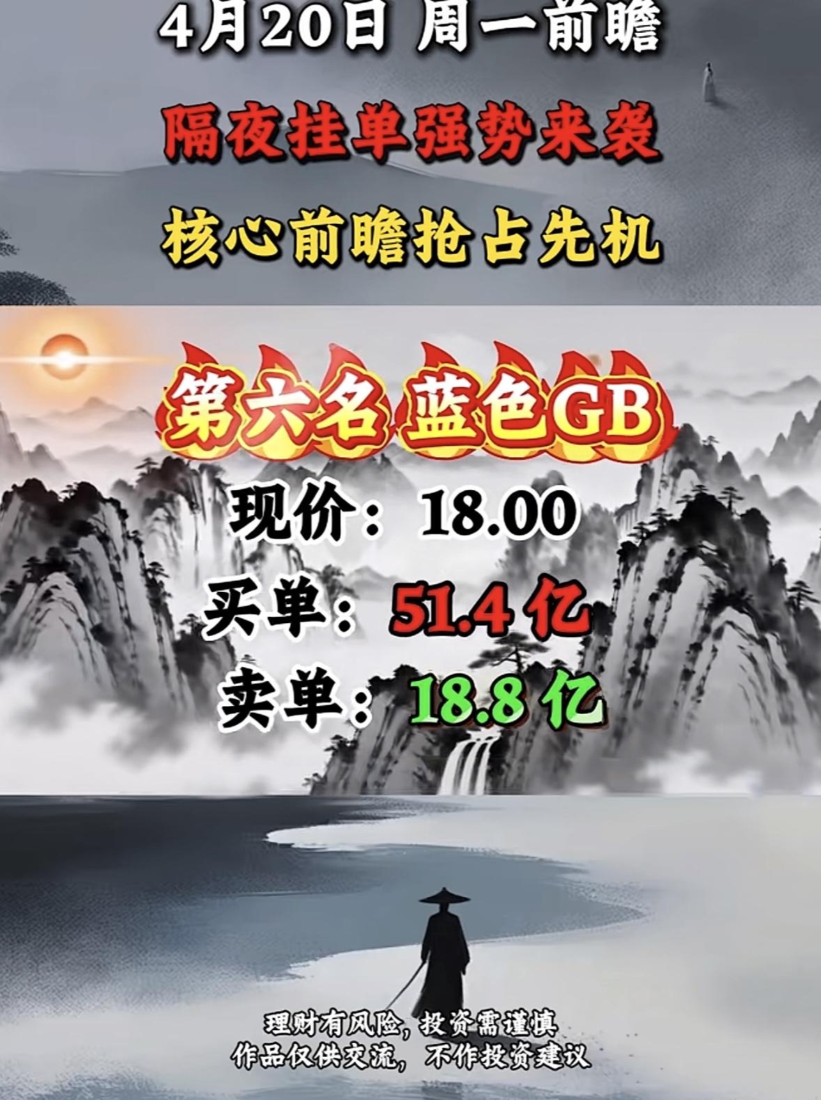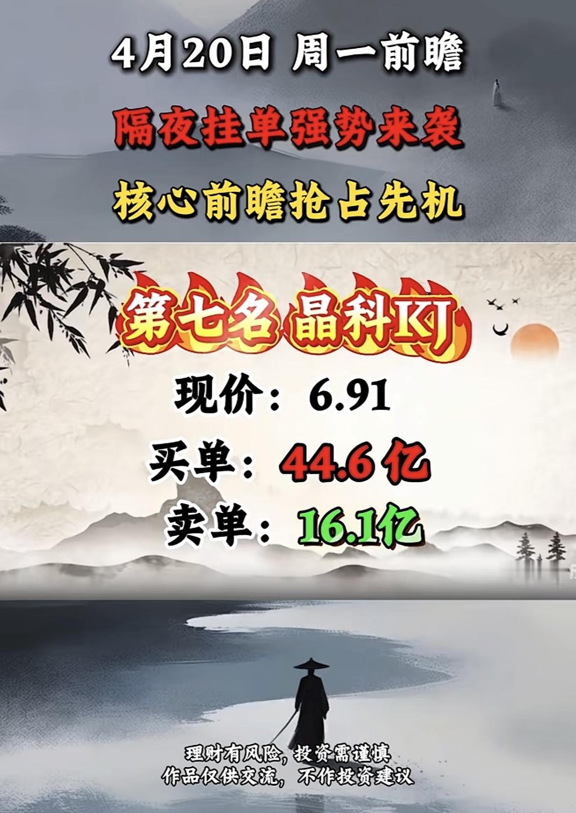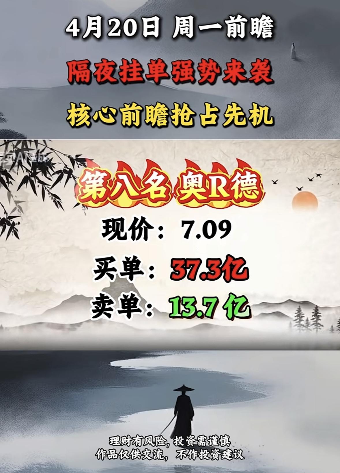 4月20日周一暗盘隔夜挂单排行榜揭晓