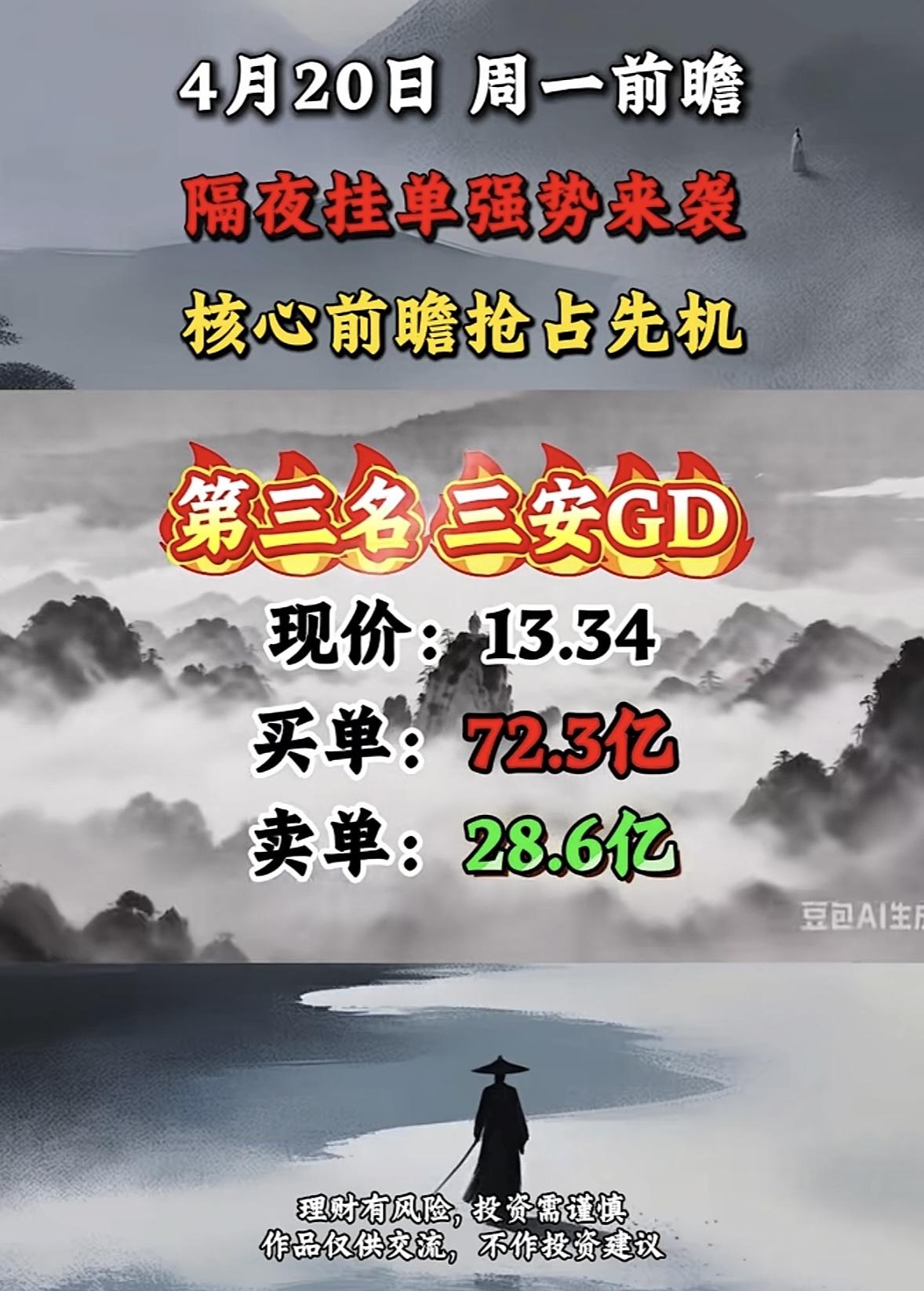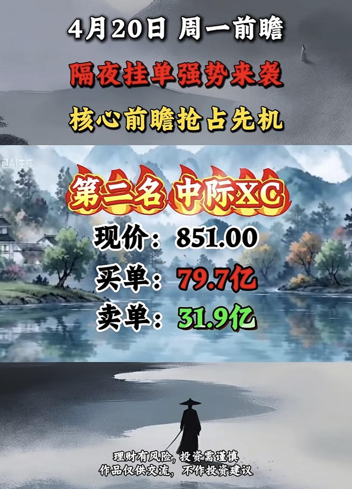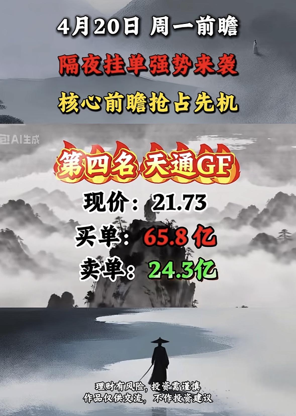 4月20日周一暗盘隔夜挂单排行榜揭晓
