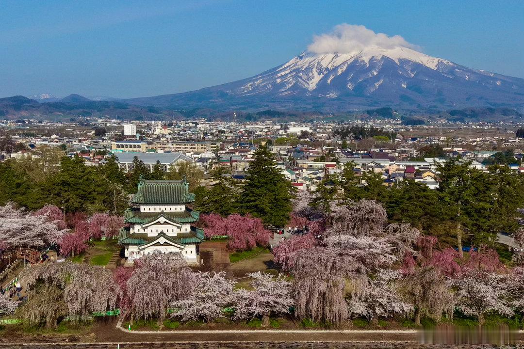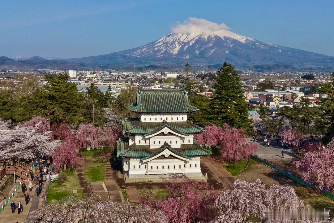 弘前春色上天家,万树樱云映彩霞。人立城头山不语,一朝观尽半生花。—— 再题弘前樱