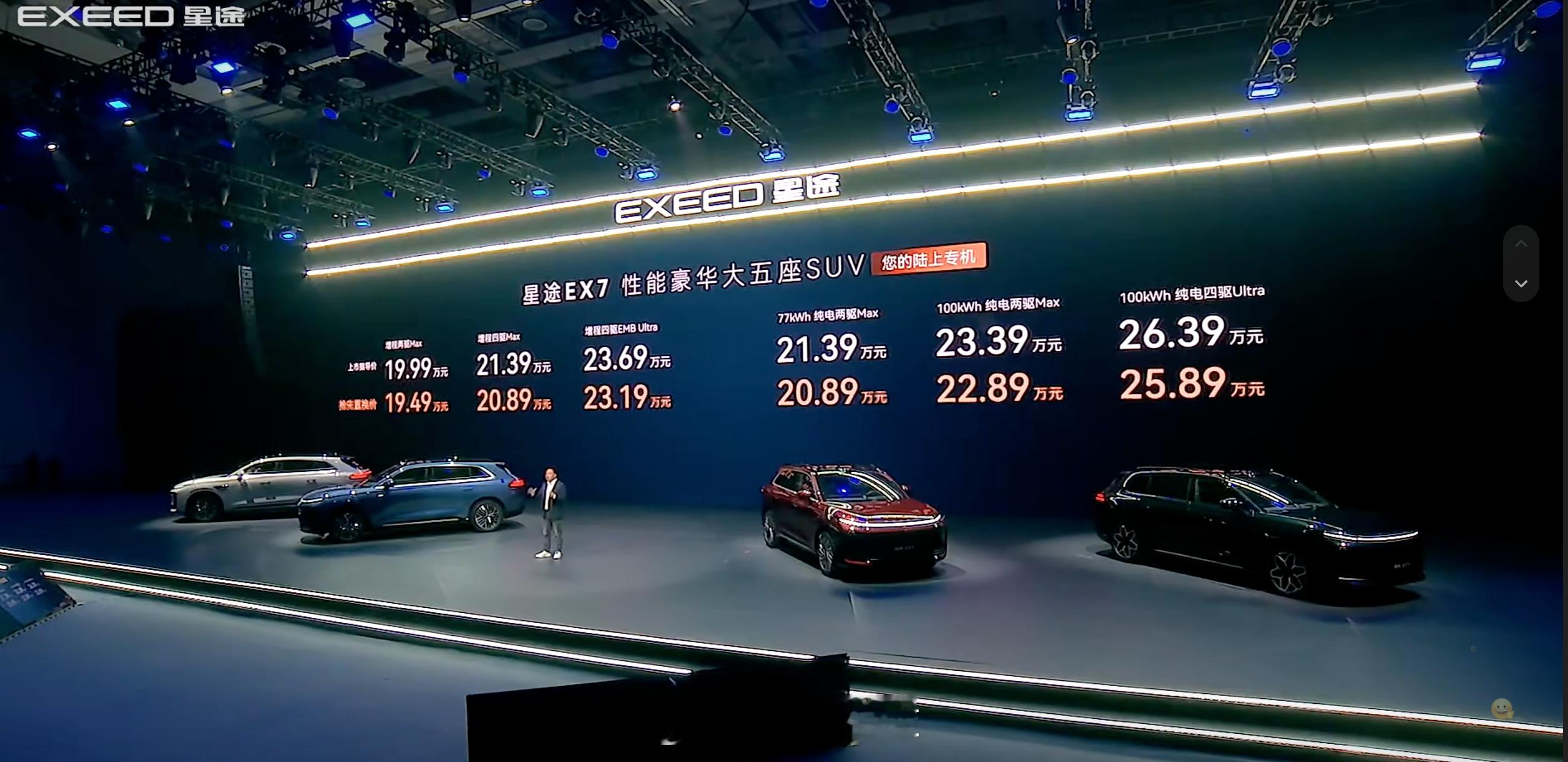 性能豪华大五座SUV星途EX7正式上市全球首发航空级EMB线控制动