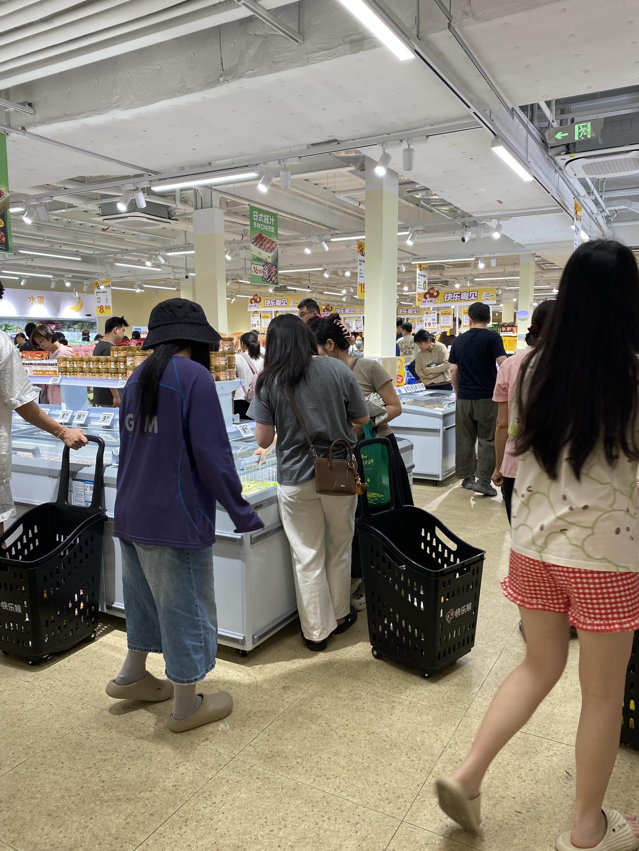 17号开张,到今天第三天了,超市里依然人潮涌涌。有的蔬菜、水果、海鲜等打折销售,价格确实实惠。