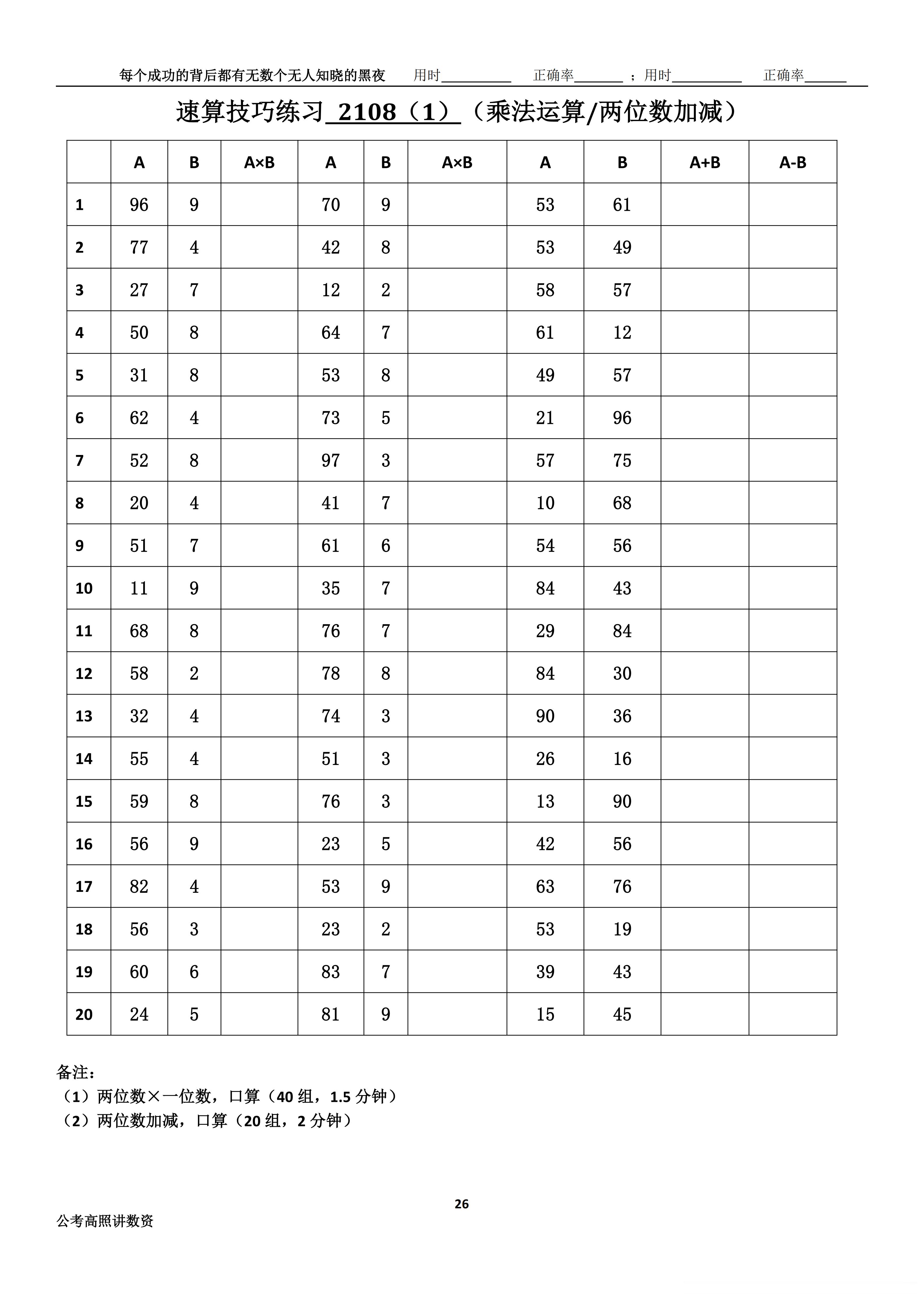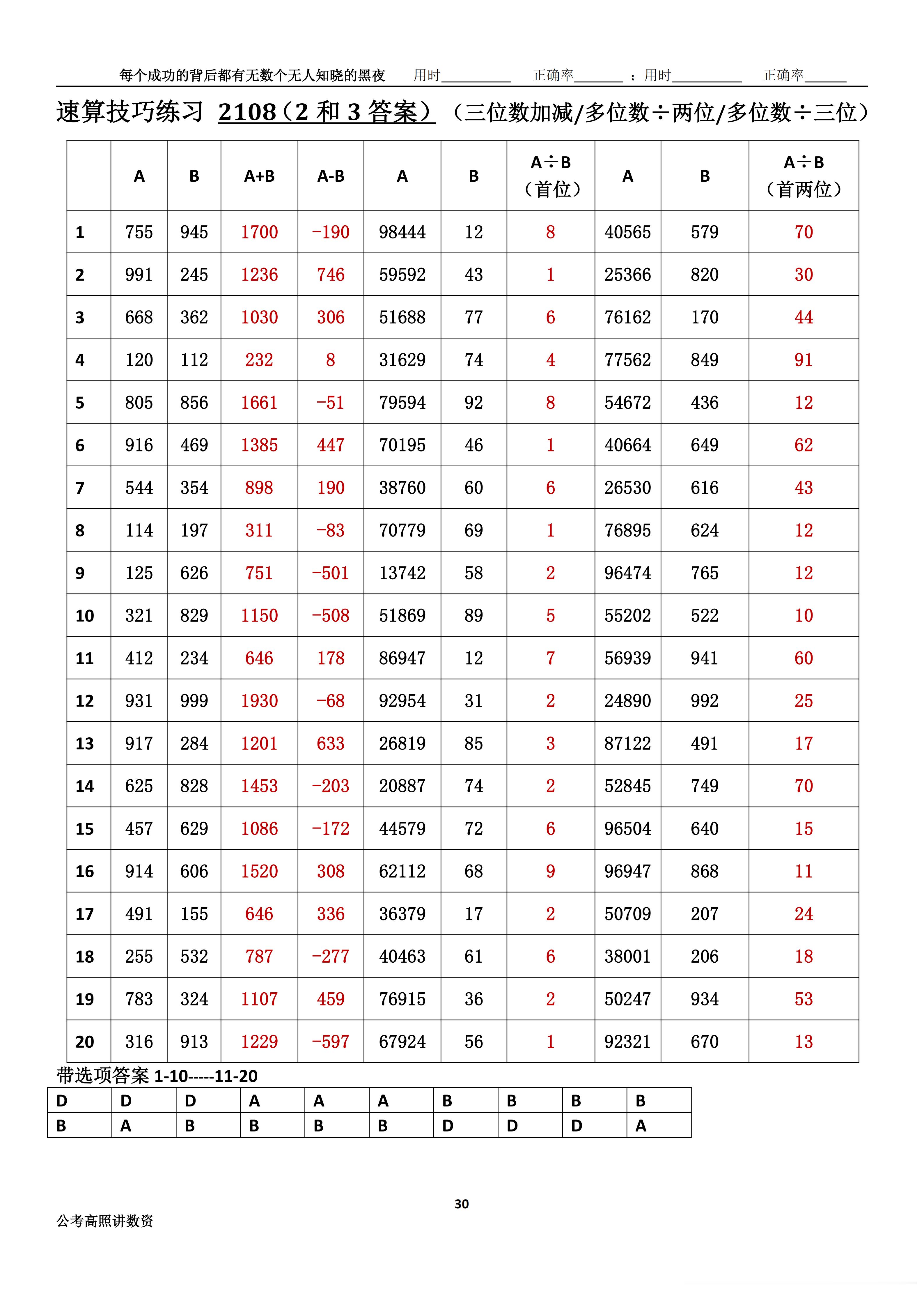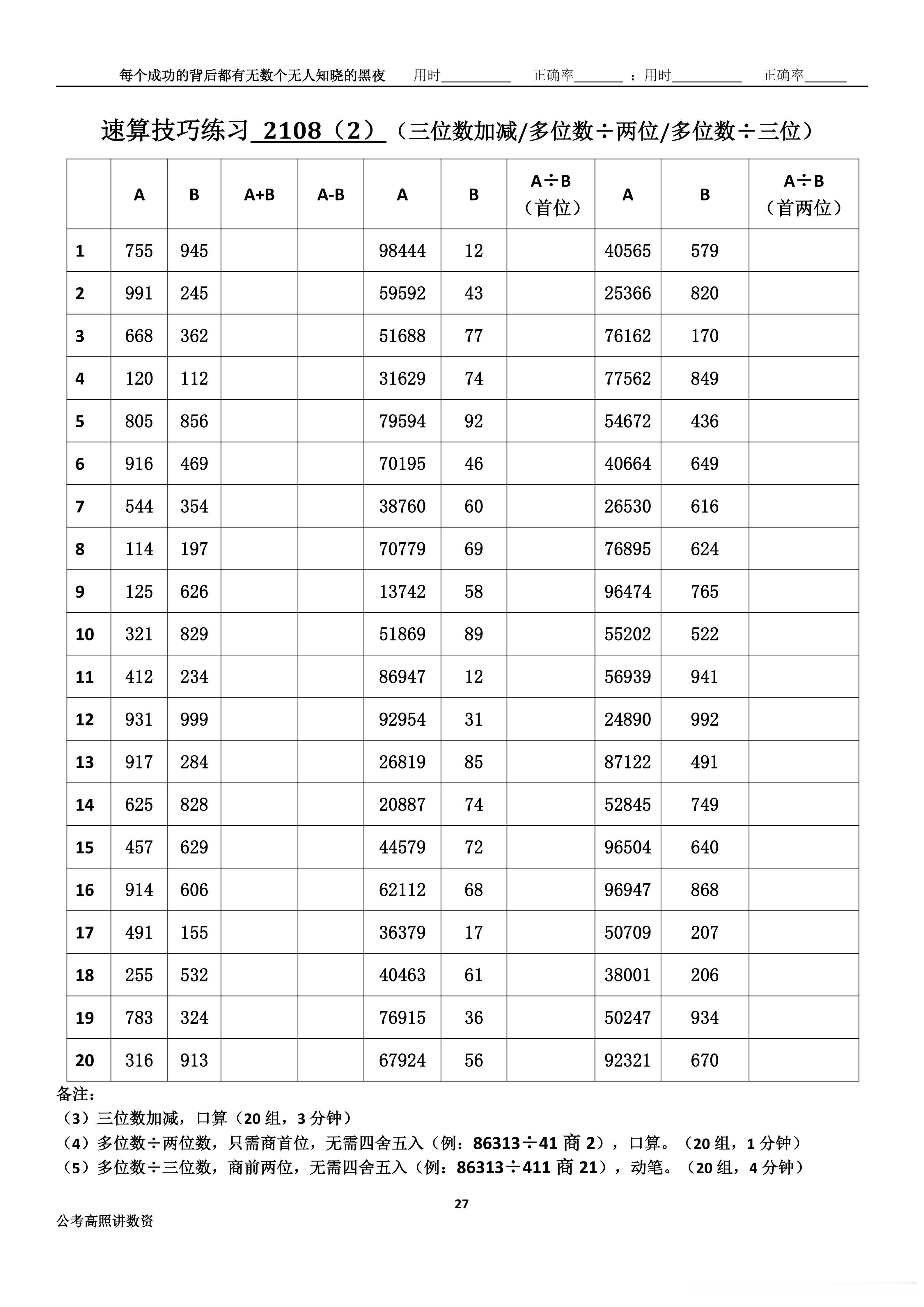跟着高照练速算决战公考 速算练习2108