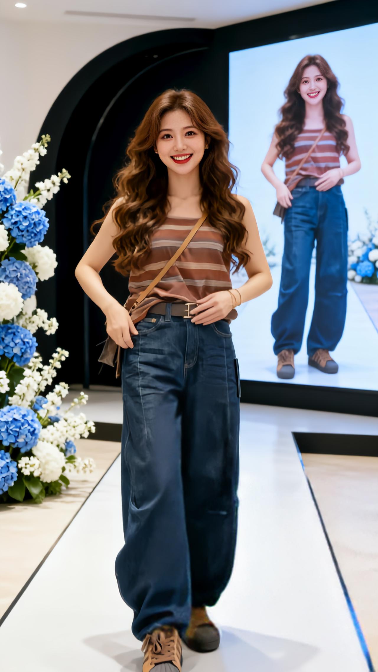 牛仔阔腿裤的百变魅力 工装高腰阔腿牛仔裤 活力条纹穿搭 牛仔阔腿裤的松弛感 活力牛仔裤
