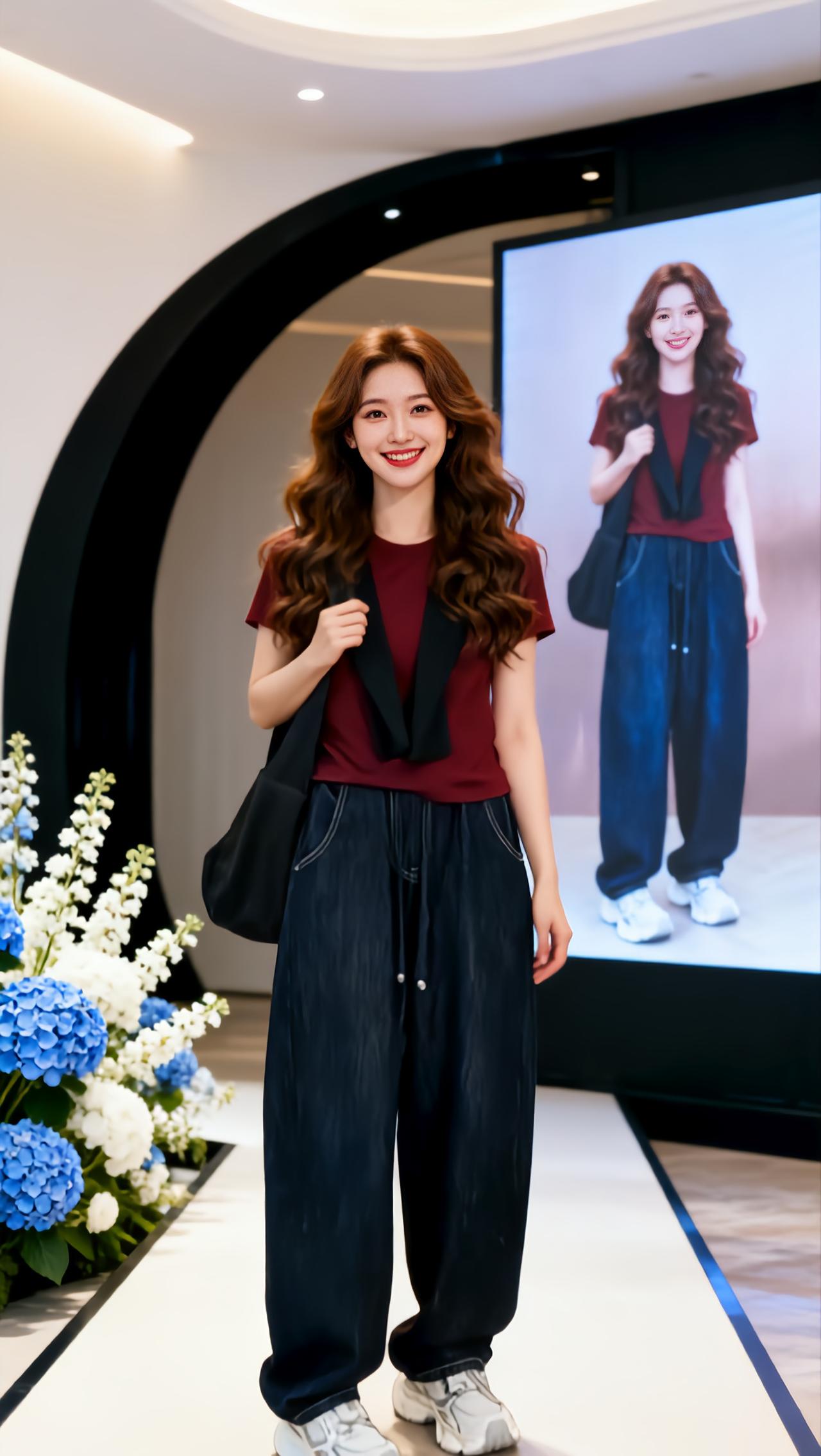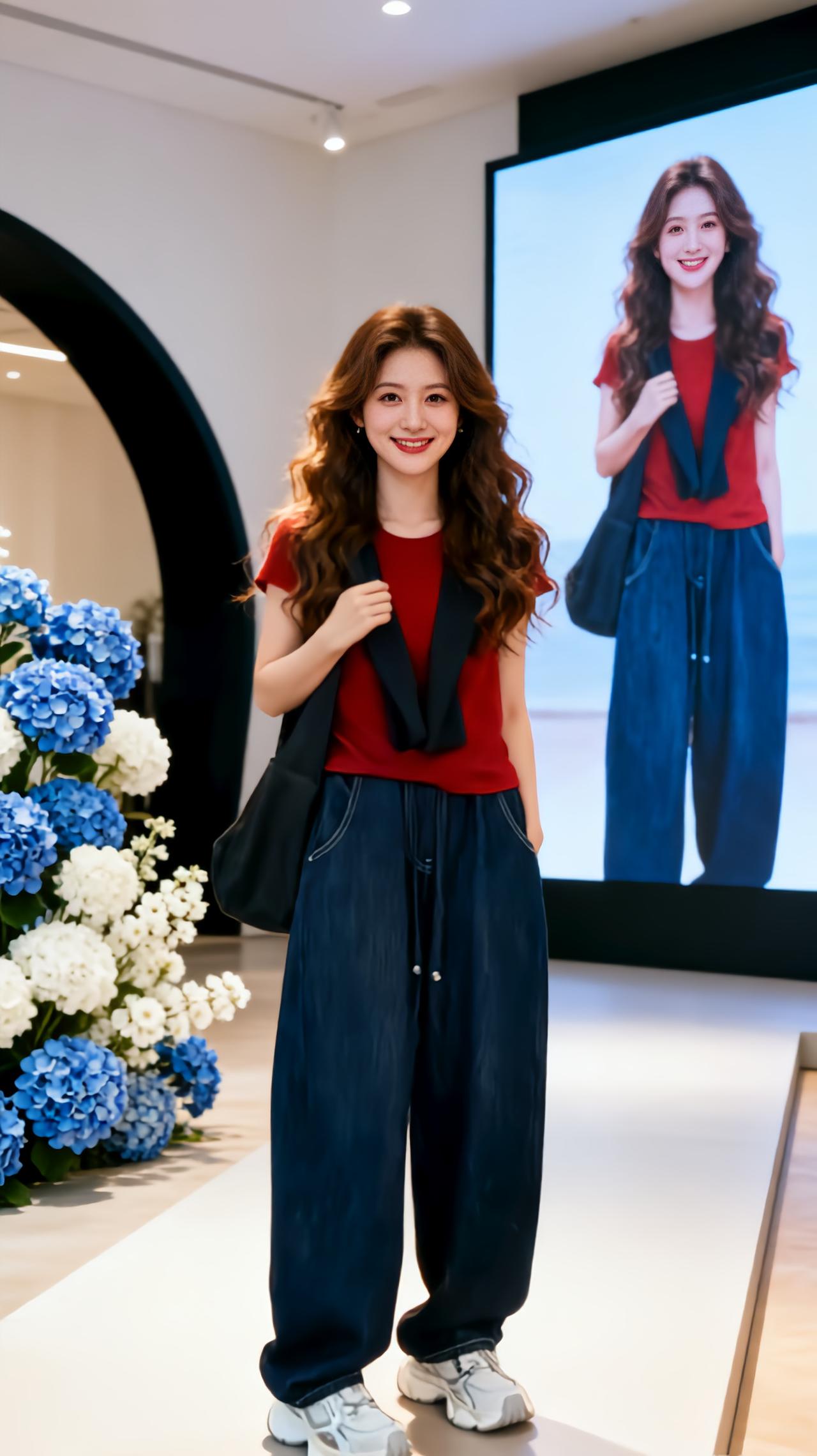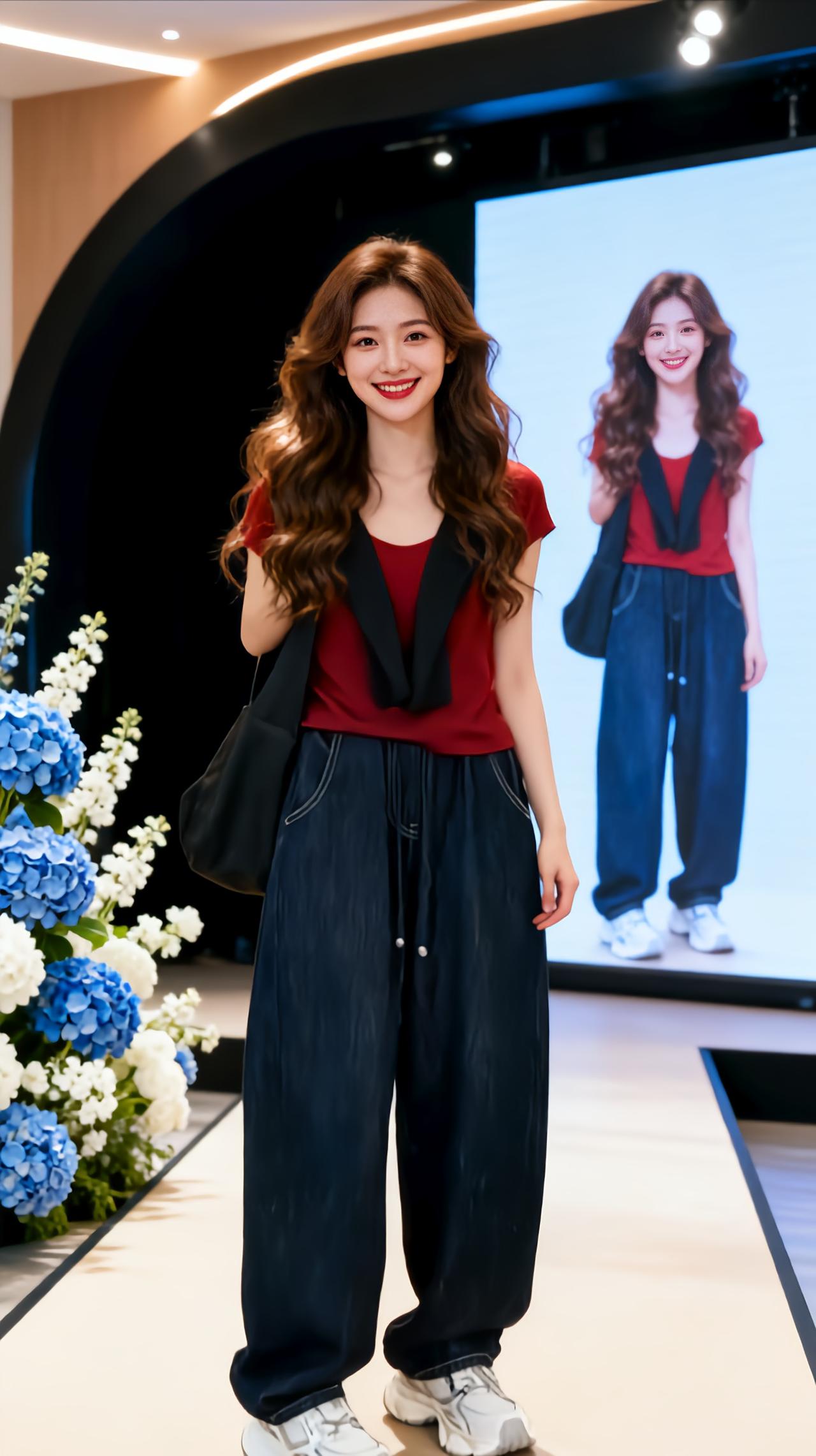牛仔阔腿裤的百变魅力 亮色阔腿牛仔裤 活力牛仔裤 黑红色复古阔腿裤 阔腿牛仔松弛感