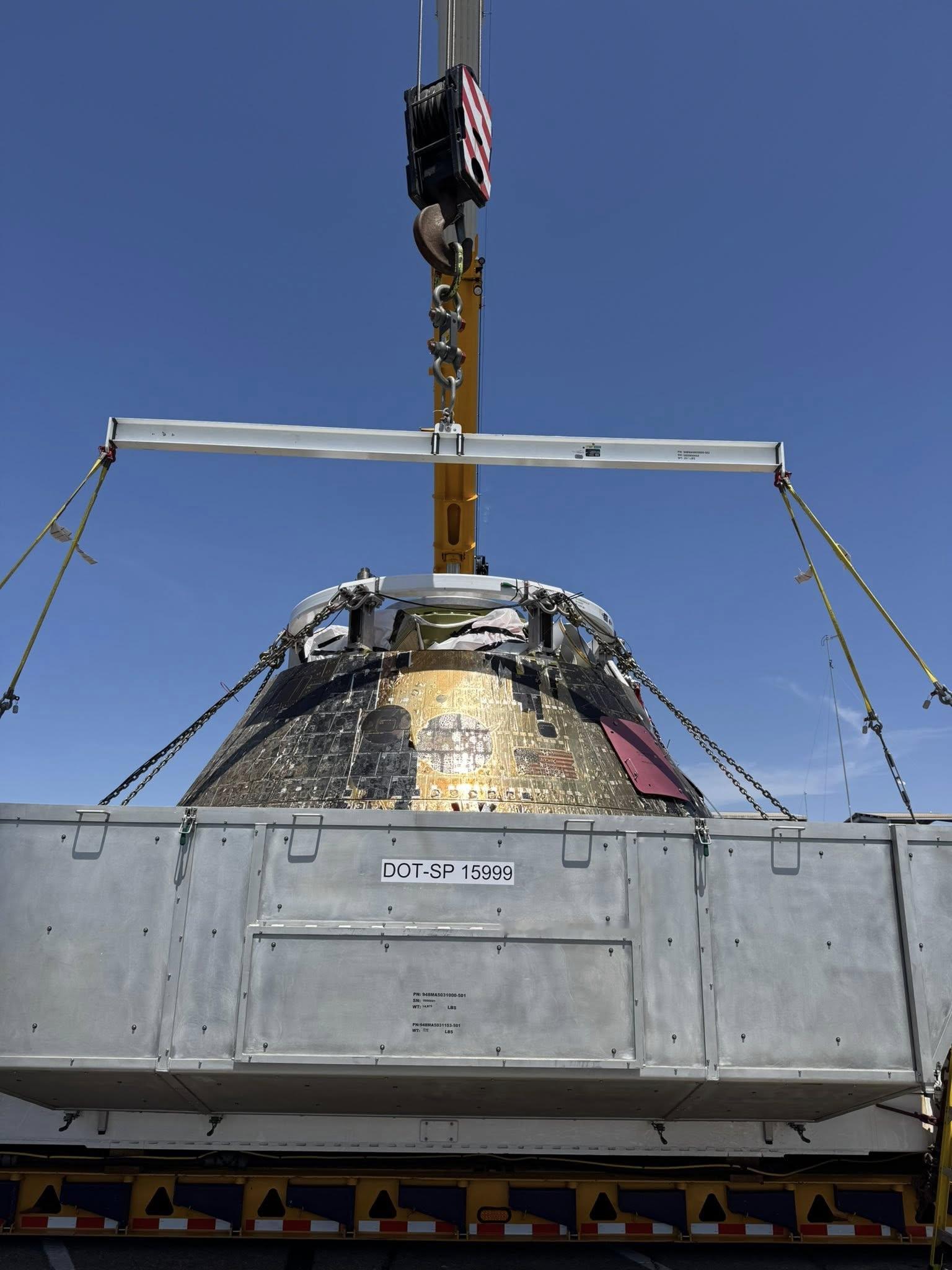 执行“阿耳忒弥斯二号”任务的“猎户座”飞船返回舱打包完毕,准备返回佛罗里达。