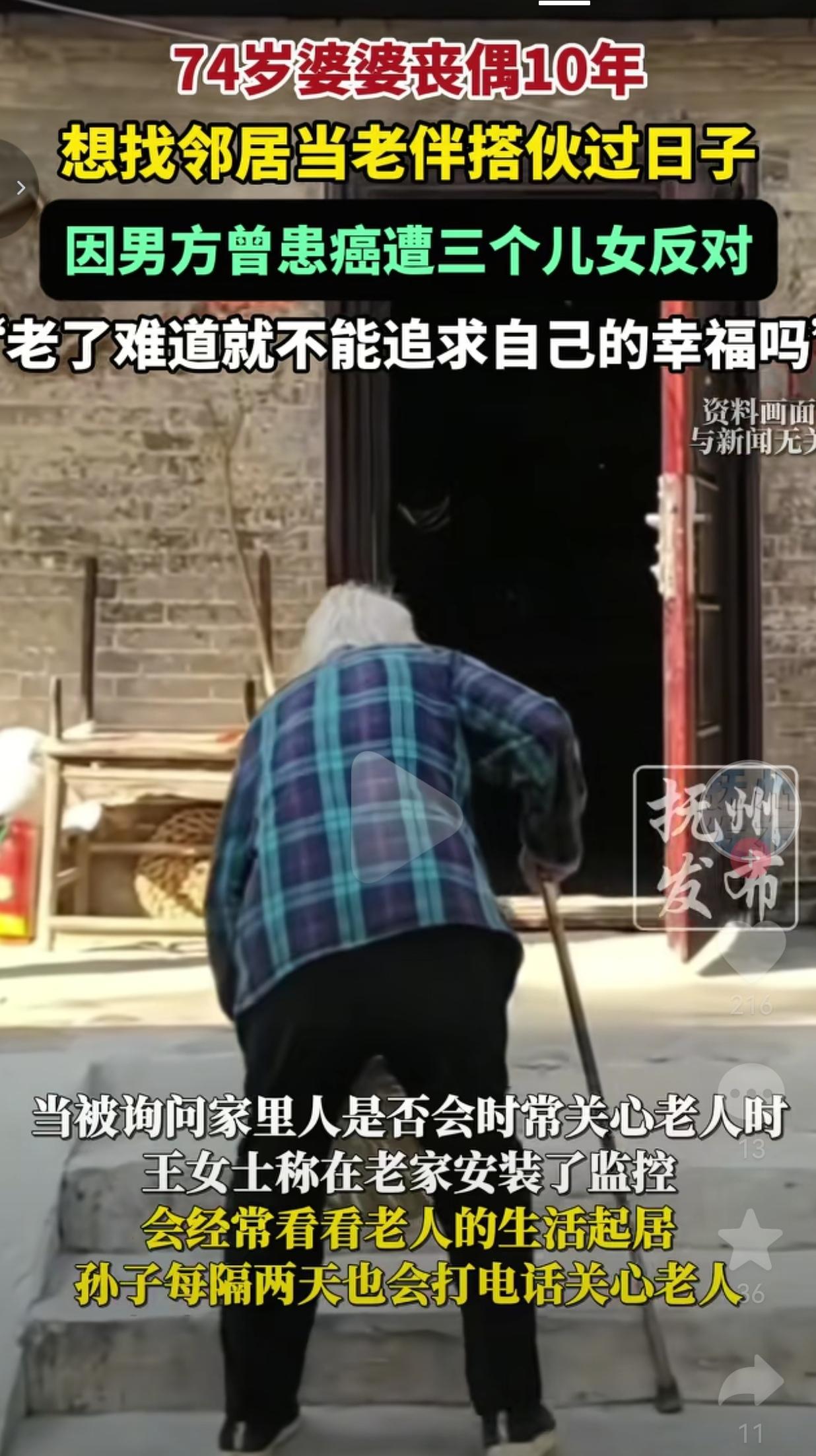 74岁的老人,养大了两儿一女、带大了6个孙辈,守寡10年想找个伴互相照应,却被亲儿女集体拦下了。