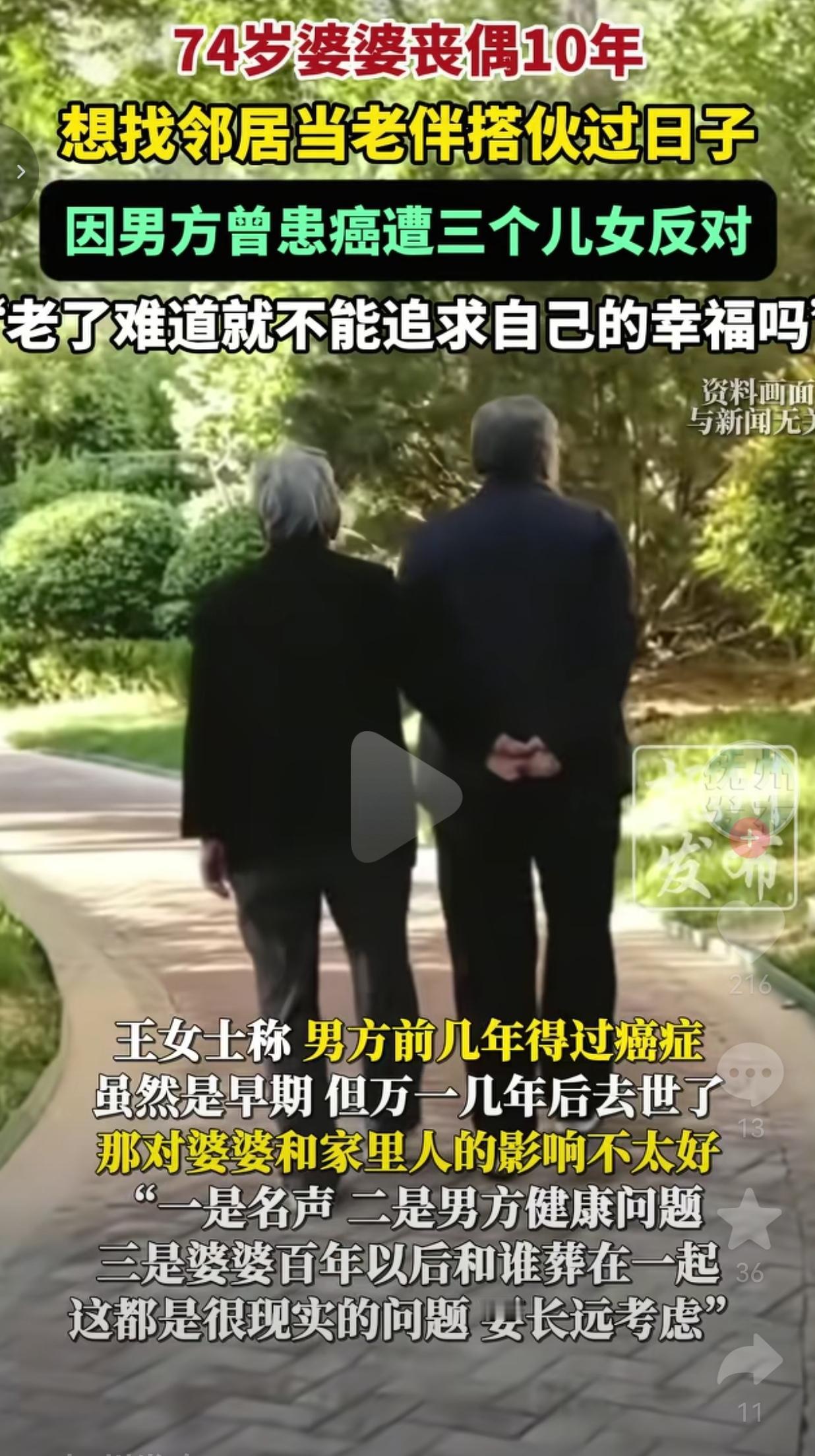 理由也很“现实”:男方前几年得过早期癌症,万一以后走了,名声不好听;怕男方的健康问题,给家里添麻烦;更纠结的是,婆婆百年之后,到底该跟谁葬在一起。