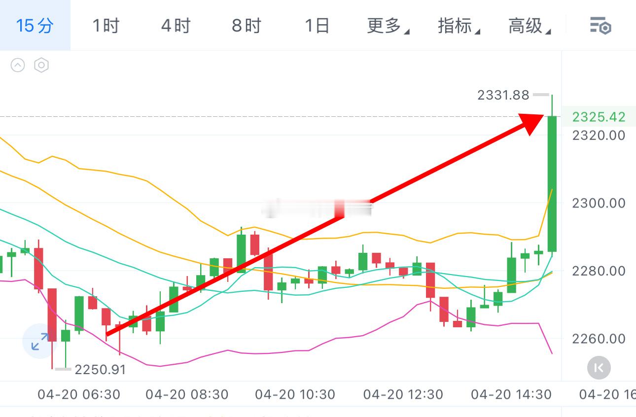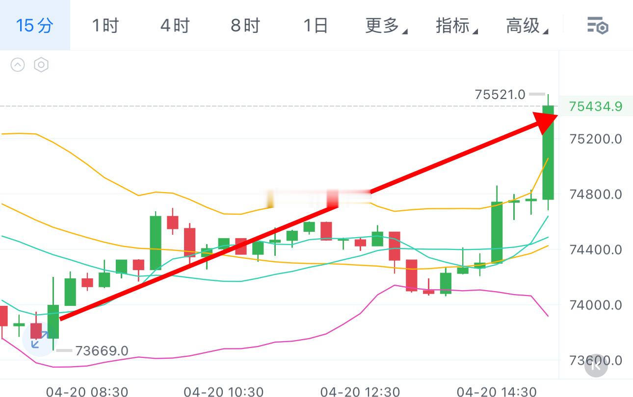 早间73700附近哆,刚刚75500/2320精准抵达!
