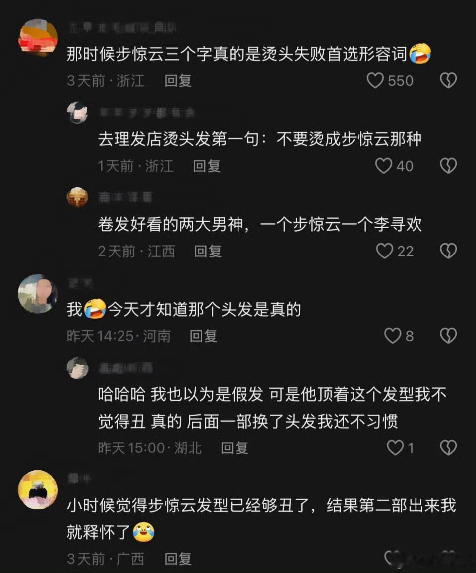 网友:那时候步惊云三个字真的是烫头失败首选形容词[允悲]