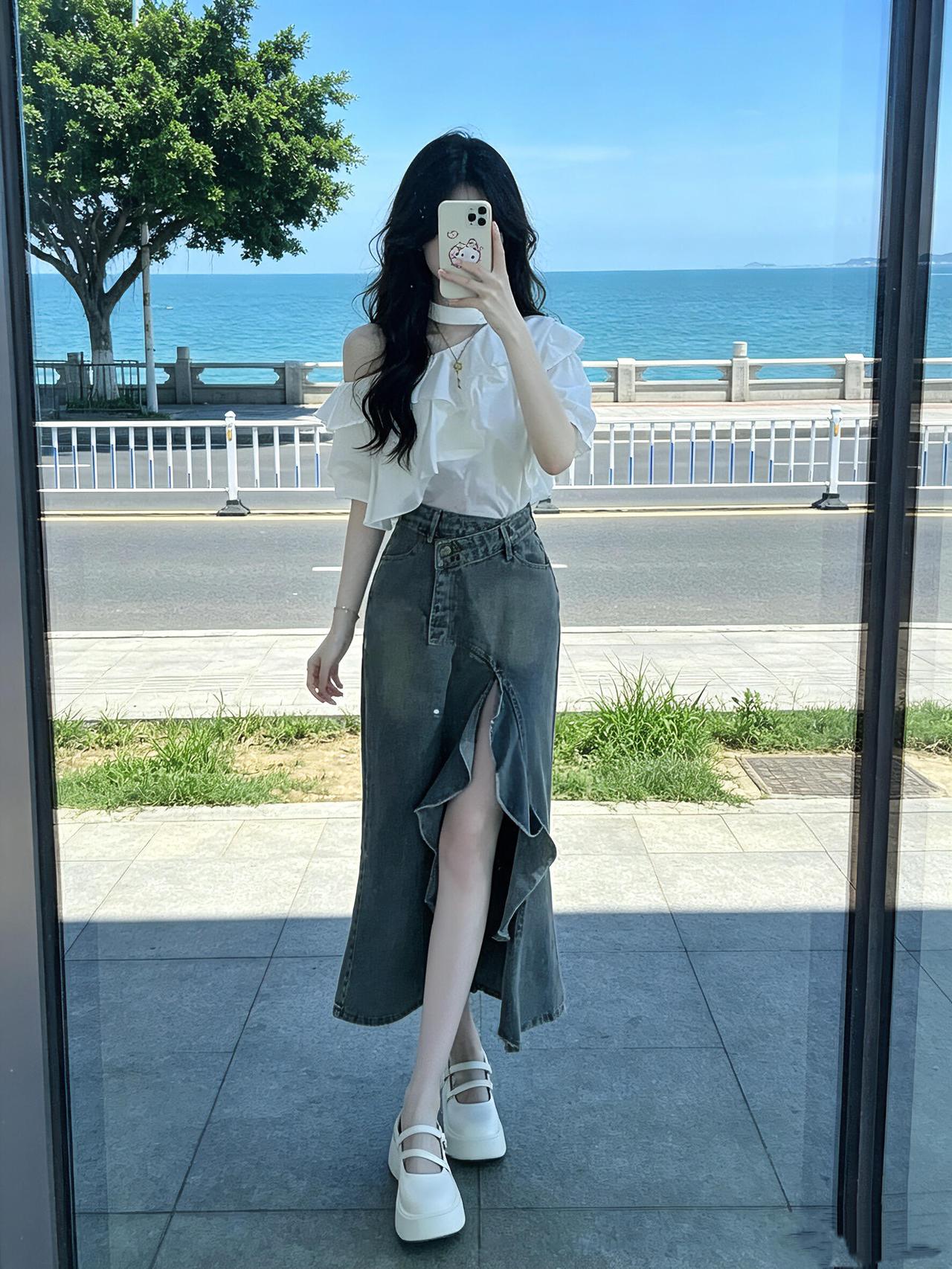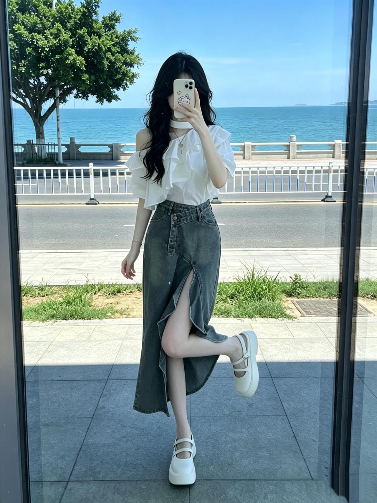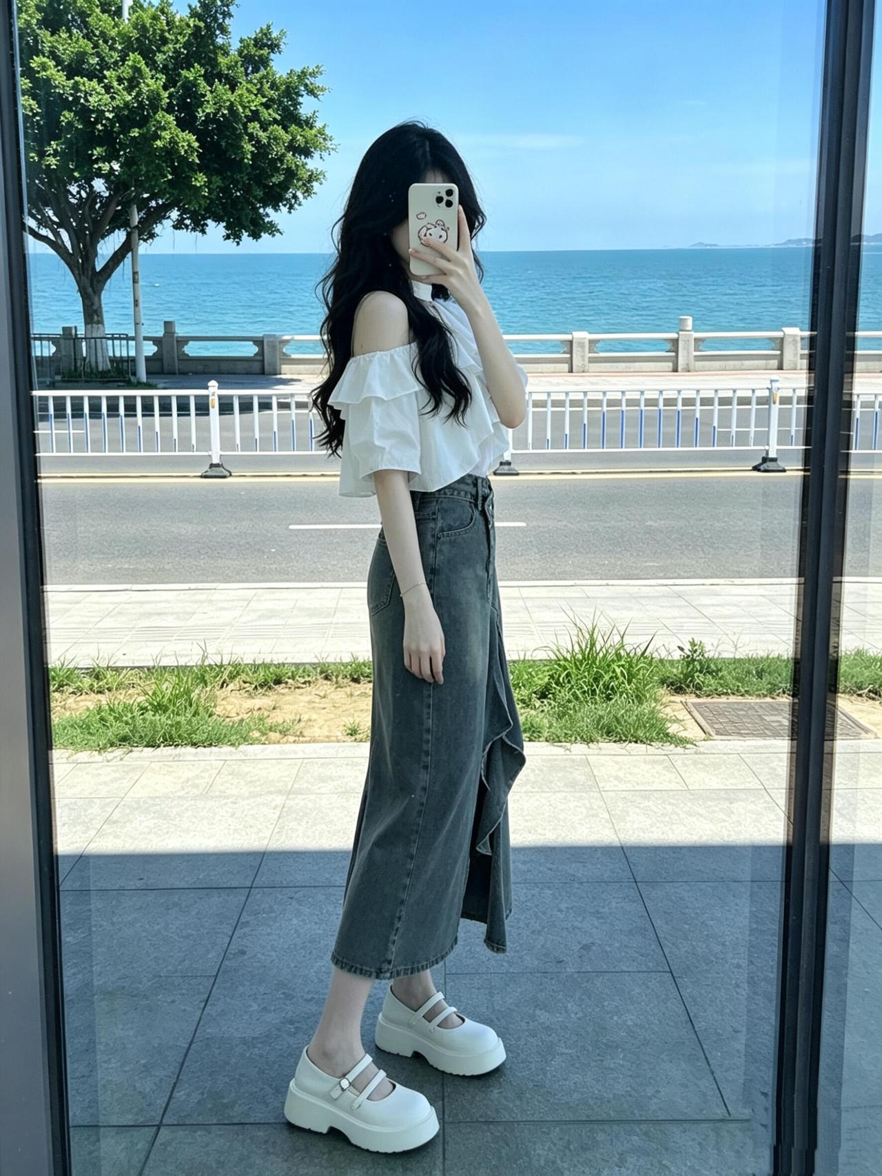 怎样穿搭能显示出温柔的女生气质? 露肩时尚配牛仔裙十小白鞋