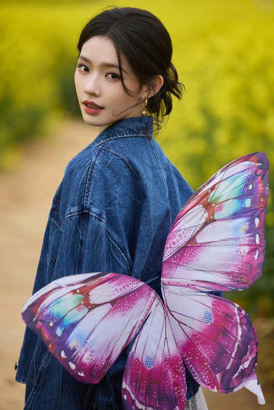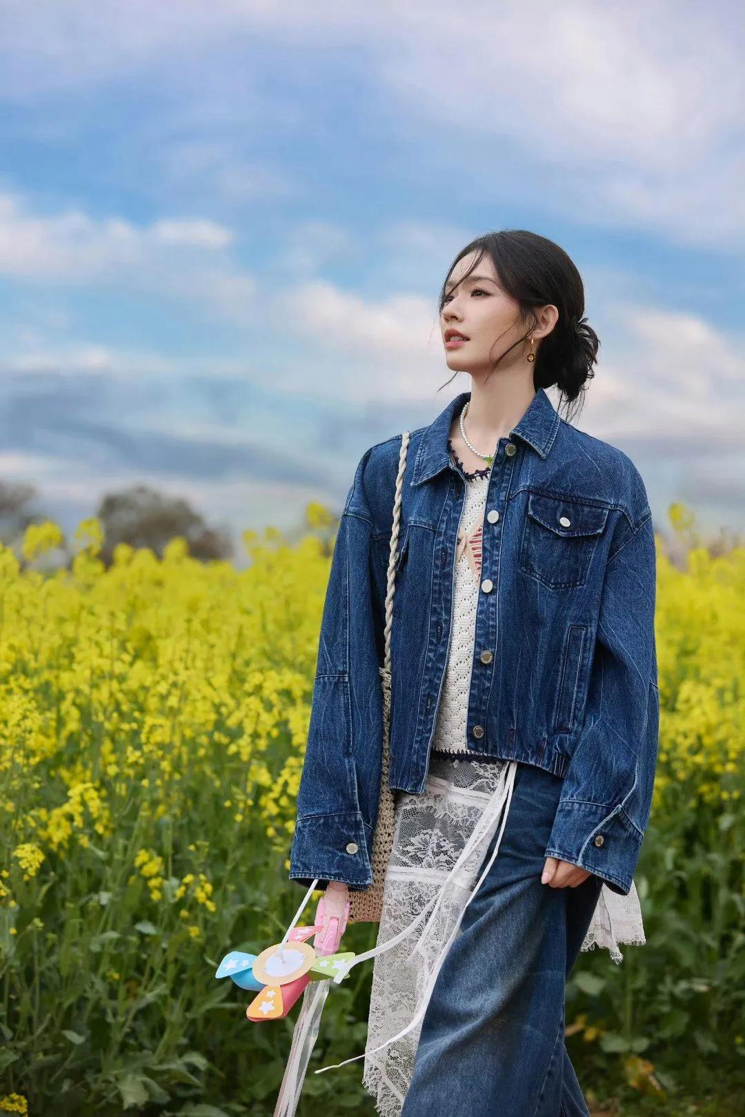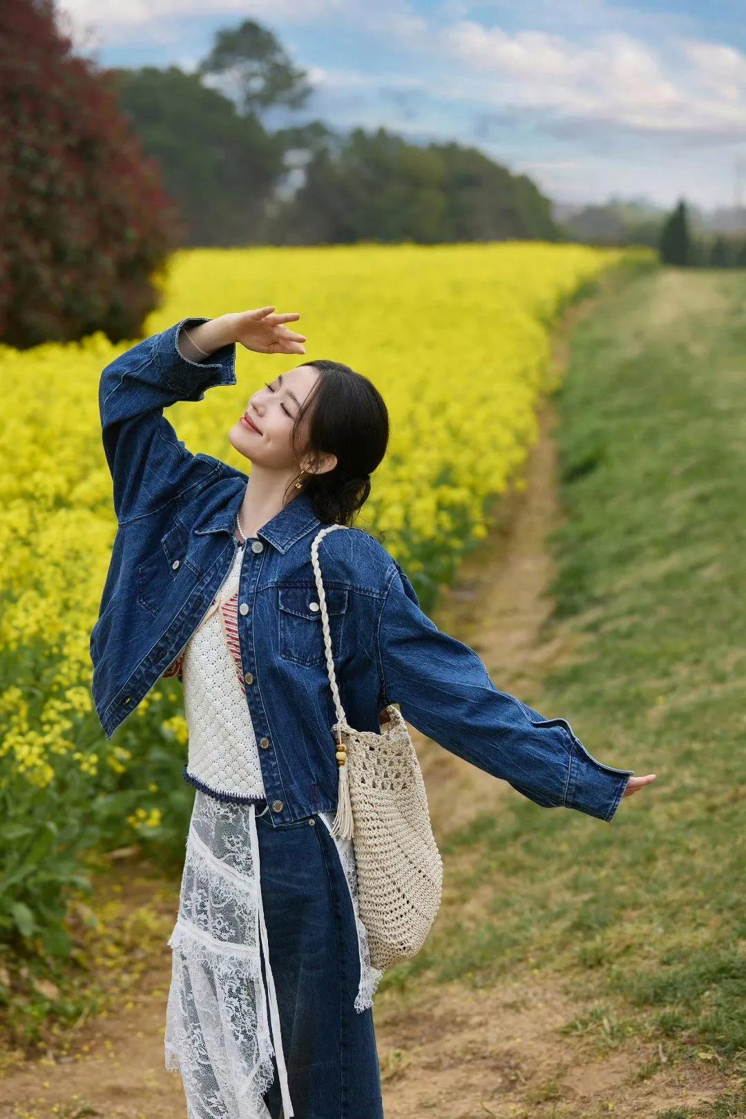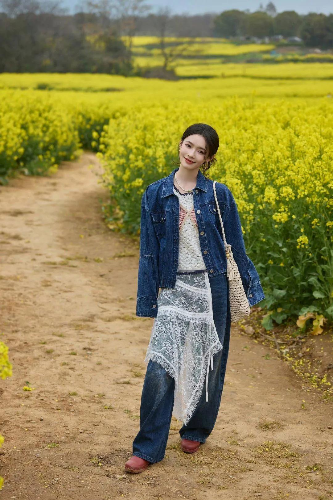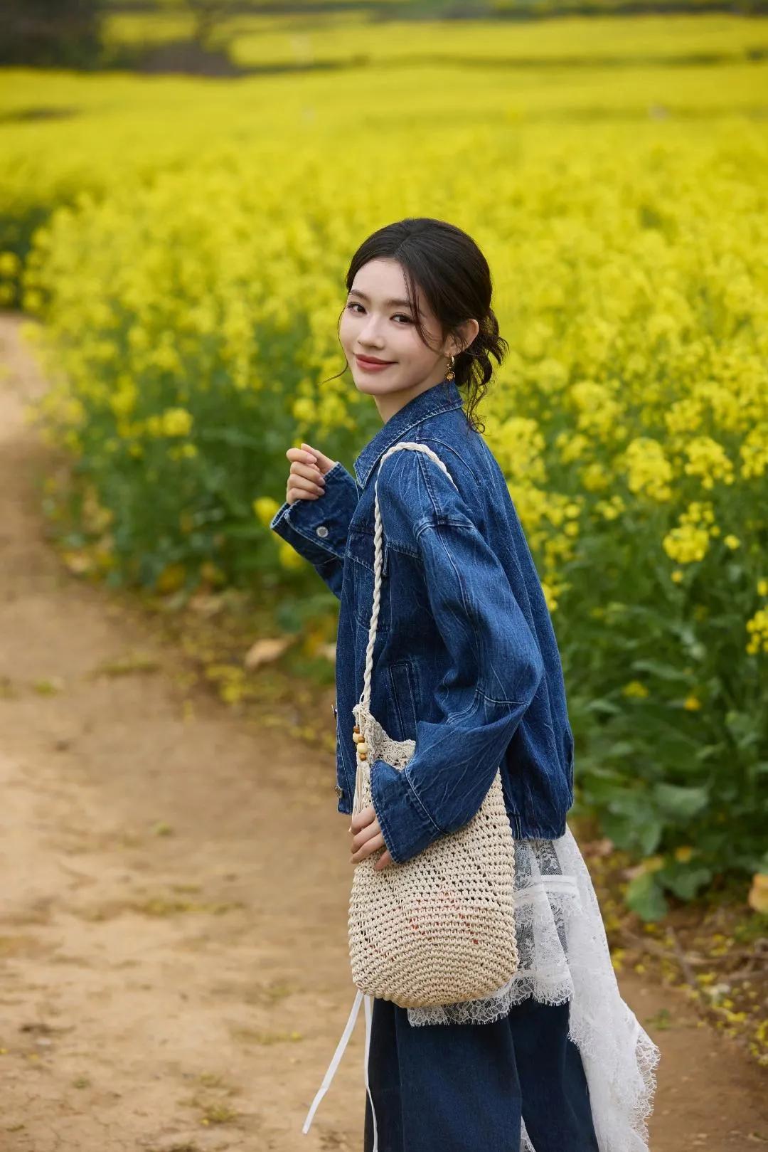 林允油菜花田穿搭,直接抄作业!