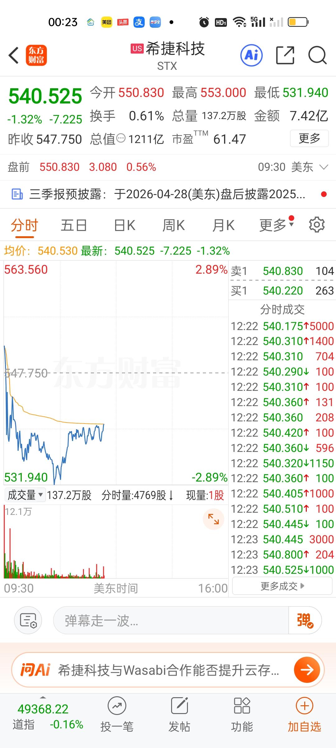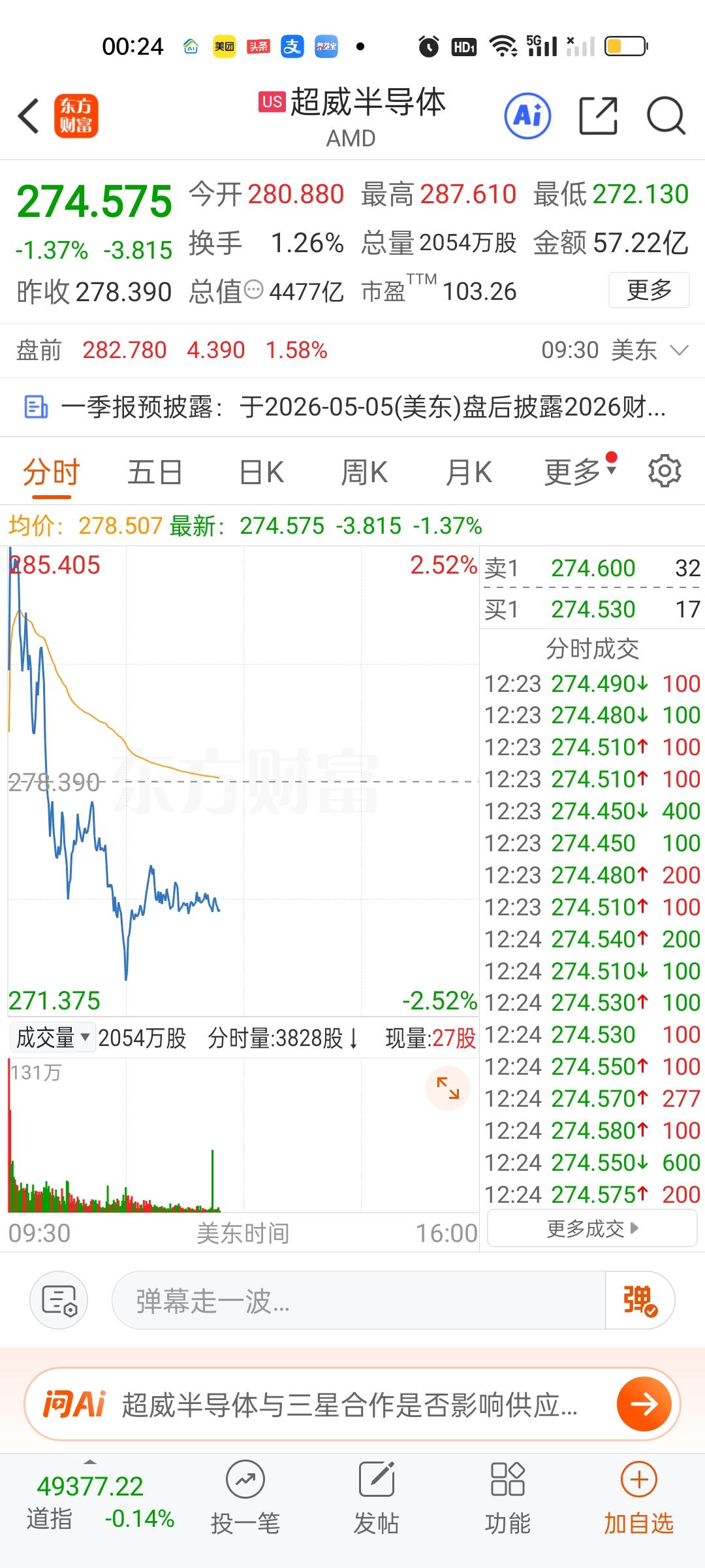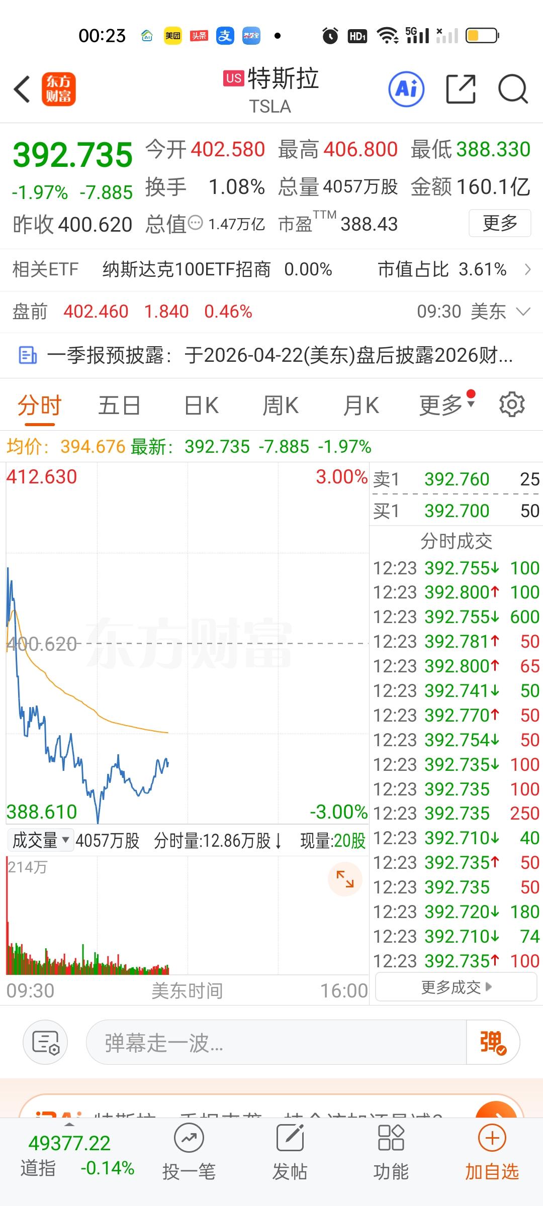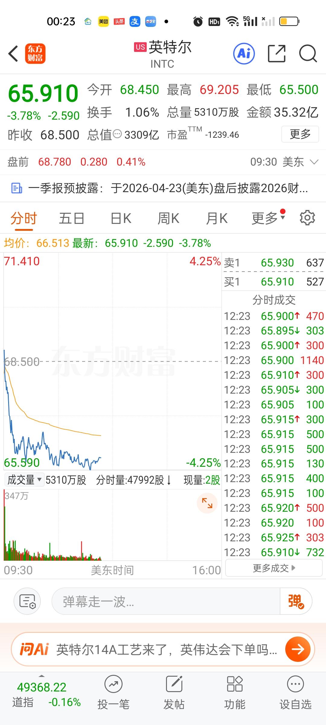 美股三大指数全部在下跌,另外科技股表现都不太好,英特尔,英伟达,特斯拉等表现也很