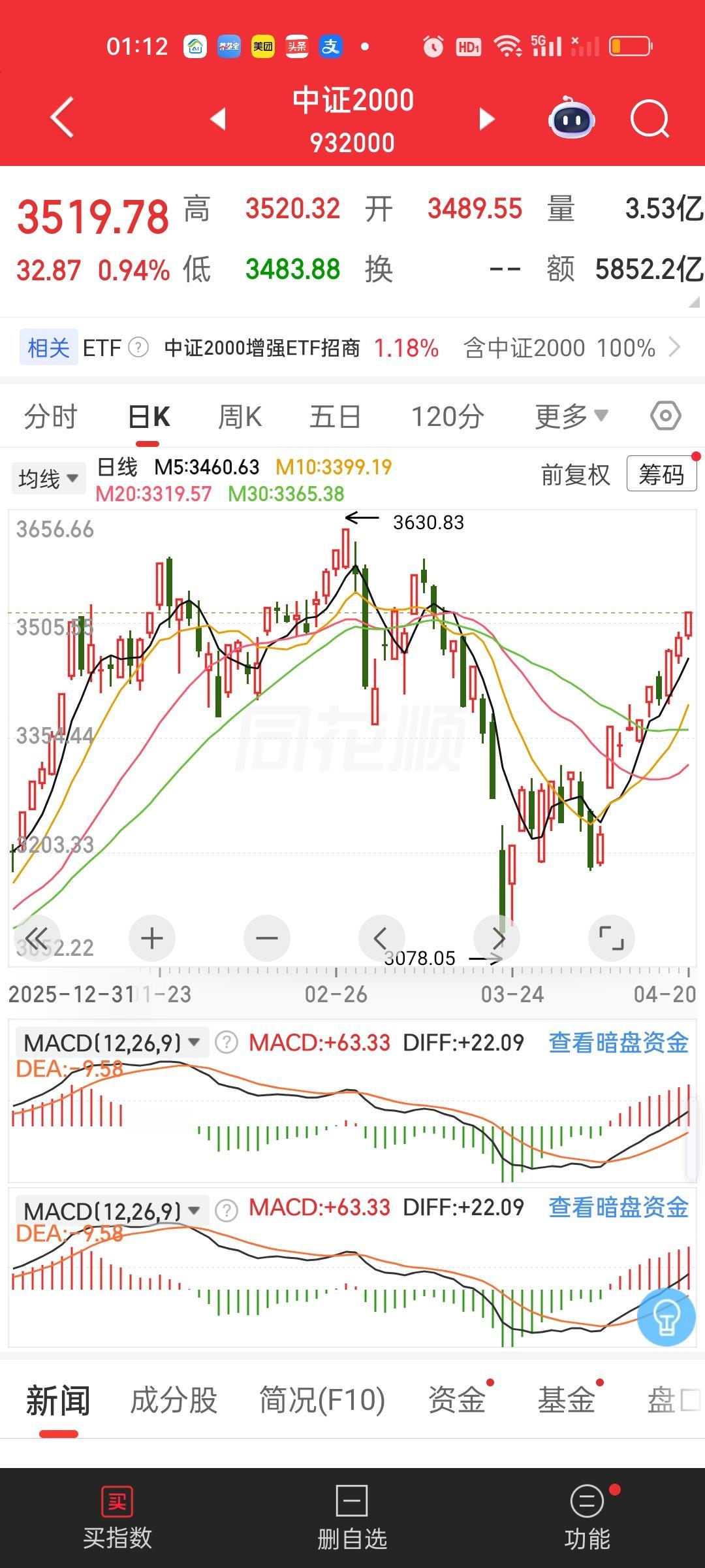 中证2000,3630.83/3519.78=1.0315,还差3.15%。