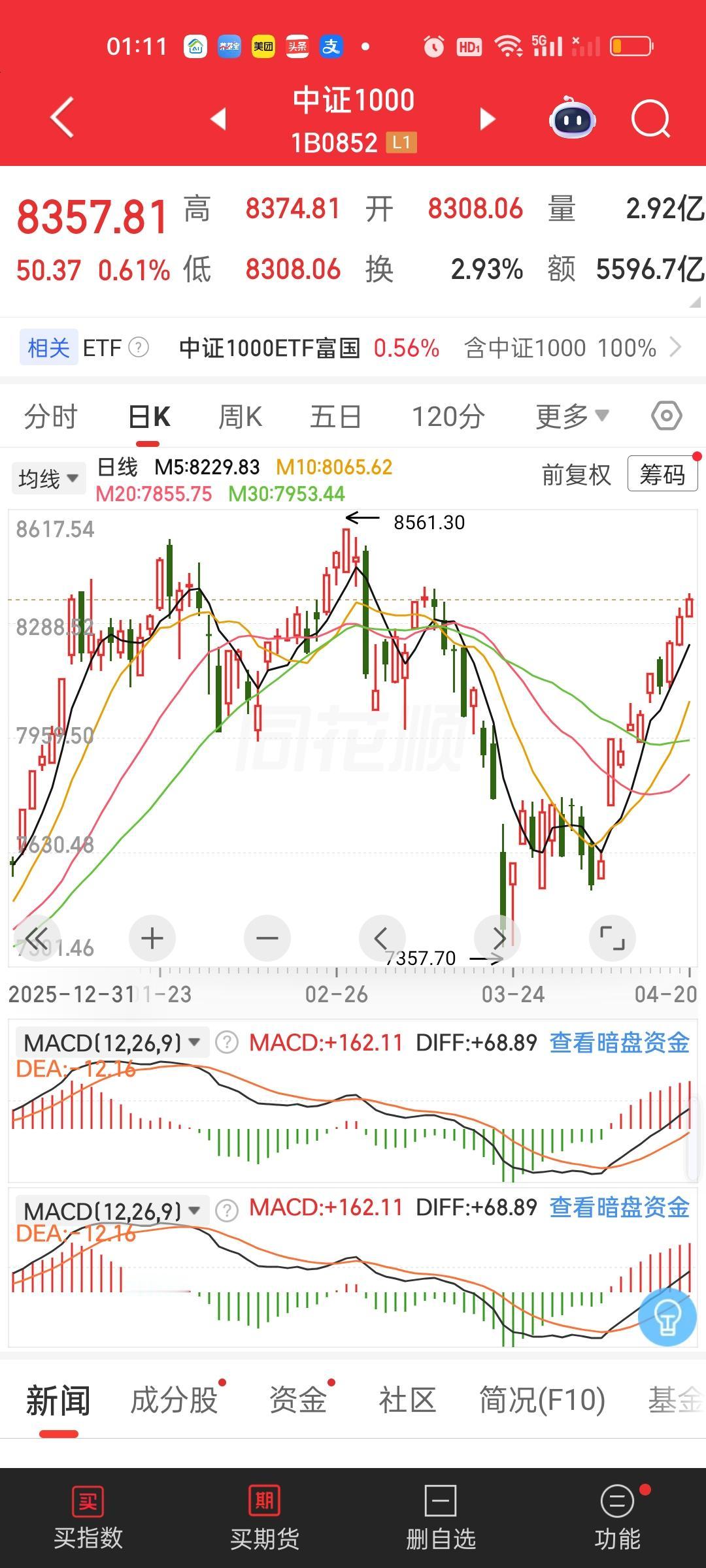 中证1000,8561.30/8357.81=1.0243,还差2.43%。