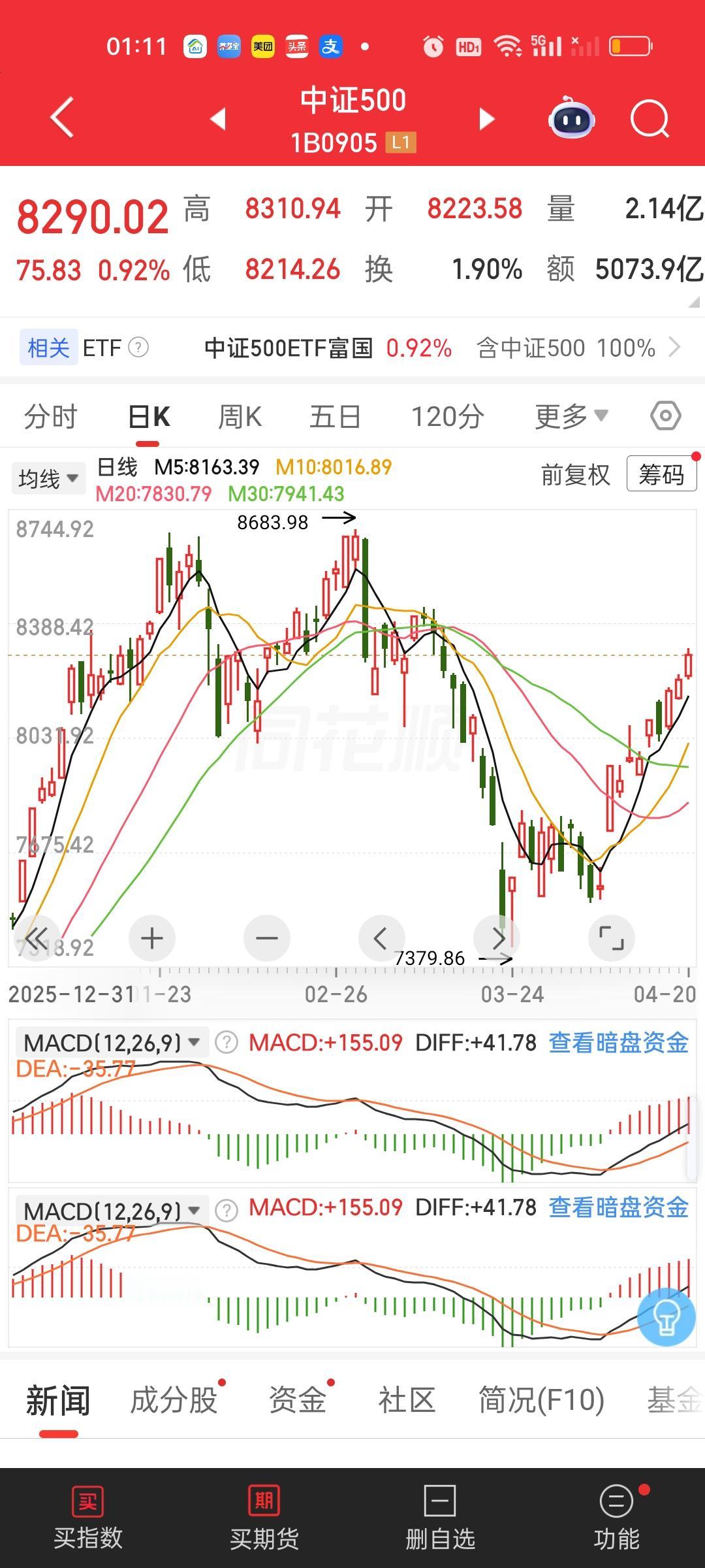 中证500,8683.98/8290.02=1.0475,还差4.75%。